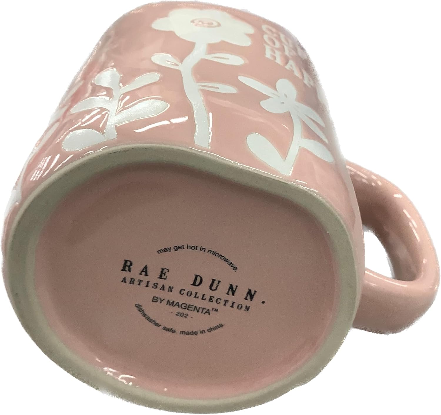 Start your mornings with a smile using this charming Rae Dunn ceramic coffee mug. Featuring a delightful "Cup of Happy" message and whimsical floral design, this springtime-inspired mug brings a touch of cheerful elegance to your daily coffee ritual. The soft pink glaze is beautifully accented with white flower motifs that wrap around the base, creating a fresh and uplifting aesthetic perfect for any season. With a generous 14-ounce capacity, this mug holds plenty of your favorite hot beverage, whether it's morning coffee, afternoon tea, or evening cocoa. Measuring 5 inches high by 5.5 inches wide, it features a comfortable handle for easy gripping and sipping. The durable ceramic construction ensures long-lasting use, while being both dishwasher and microwave safe for convenient everyday functionality. This Rae Dunn mug makes a wonderful gift for coffee lovers, collectors, or anyone who appreciates charming drinkware that brightens their day.