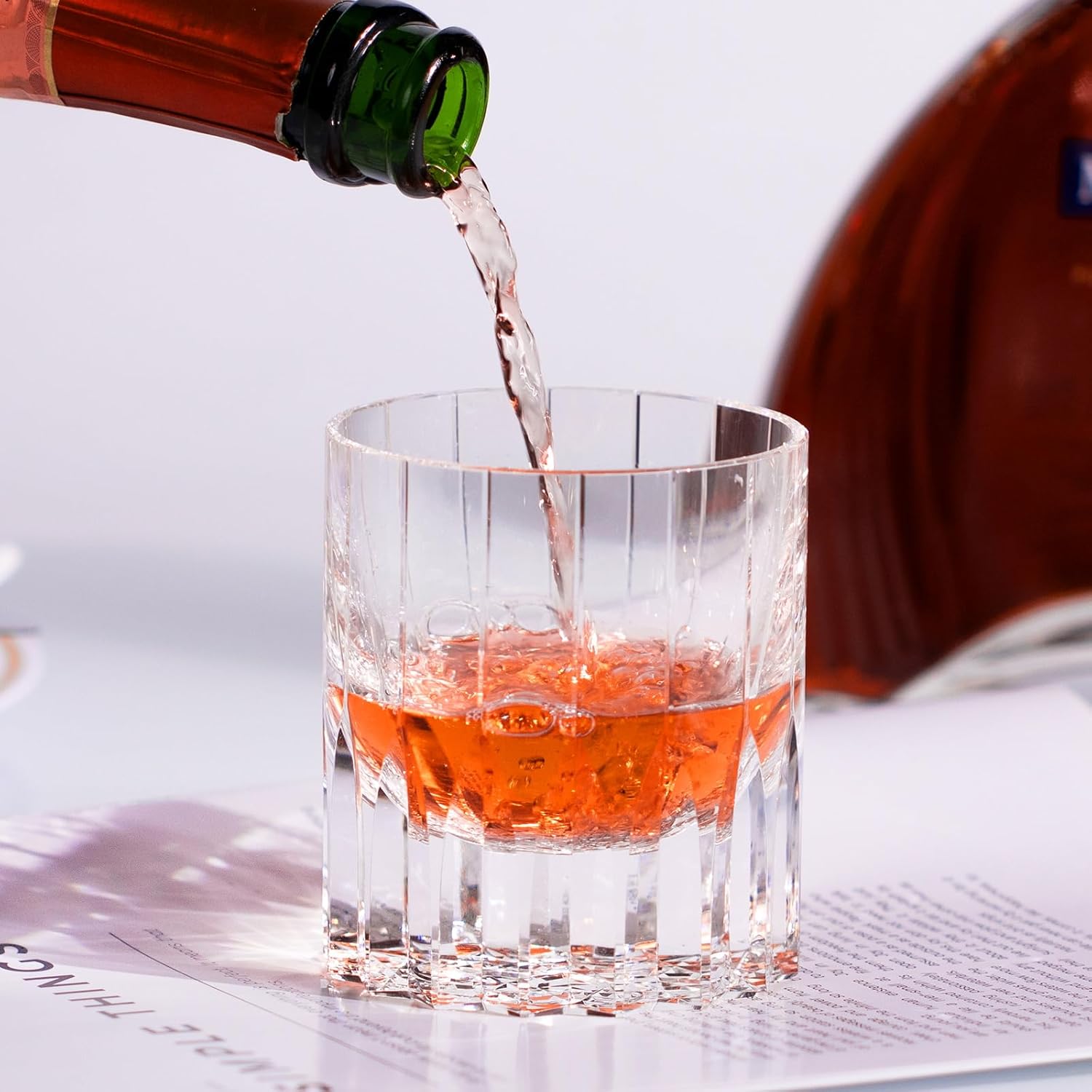 KAMMAK Whiskey Shot Glass 7.27oz Starburst KAMMAK Stemless Glasses Set of 2-7.27oz, Crystal White Whiskey Glasses, Engagement Gifts for Couples, Women, Dishwasher Safe, Hand Blown