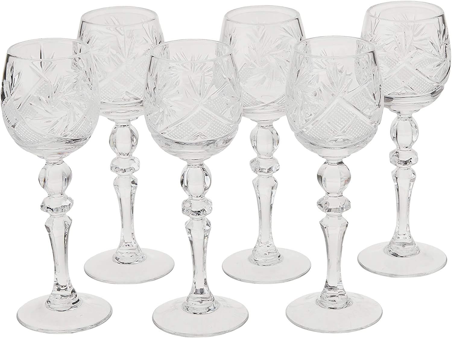 Belarus Crystal WG7565, 2 Oz Hand Made Vintage Crystal Stemmed Shot Glasses, Vodka Shots, Set of 6 is an amazing gift for a wedding, birthday or housewarming party. Coming in a set of 6 it will perfectly fit for a party with friends or family. The dimensions of the glasses are 6" x 2.1". The capacity of 1.5 ounces makes these glasses perfect for drinking vodka, liquor or any alcoholic shot beverage. An amazing design of these glasses was created by talented and experienced European artisans.