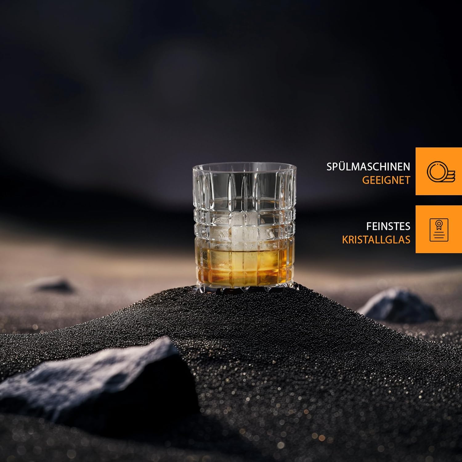 Elevate your drinking experience with the Square Collection Crystal Whisky Tumblers, designed in 2018 to combine functionality with striking style. This set of four 11.7 oz. tumblers is crafted from lead-free crystal glass, offering exceptional brilliance and transparency that enhances the look of your favorite whiskey, scotch, bourbon, or cocktails. The geometric design features clean lines and minimalist detailing, while the cut decoration adds sparkle and dimension to every pour. These whiskey tumblers are machine-made, ensuring uniform balance and consistency across the set, while still retaining the elegance and weight that crystal glassware is known for. Each tumbler measures approximately 4 inches in height, providing a versatile size for neat pours, whiskey on the rocks, or creative cocktail presentations. Whether for daily use or special occasions, these glasses bring sophistication and modern flair to any home bar or dining table. Designed with practicality in mind, these crystal tumblers are dishwasher safe, making cleanup quick and convenient. However, because they are crafted from glass, they should be handled carefully to avoid breakage. This set of four whiskey glasses is packaged to provide a refined and thoughtful gift option for birthdays, anniversaries, or housewarmings, as well as a stylish addition to any glassware collection. Add the Square Collection Whiskey Tumblers to your barware and enjoy an elevated drinking experience every time.