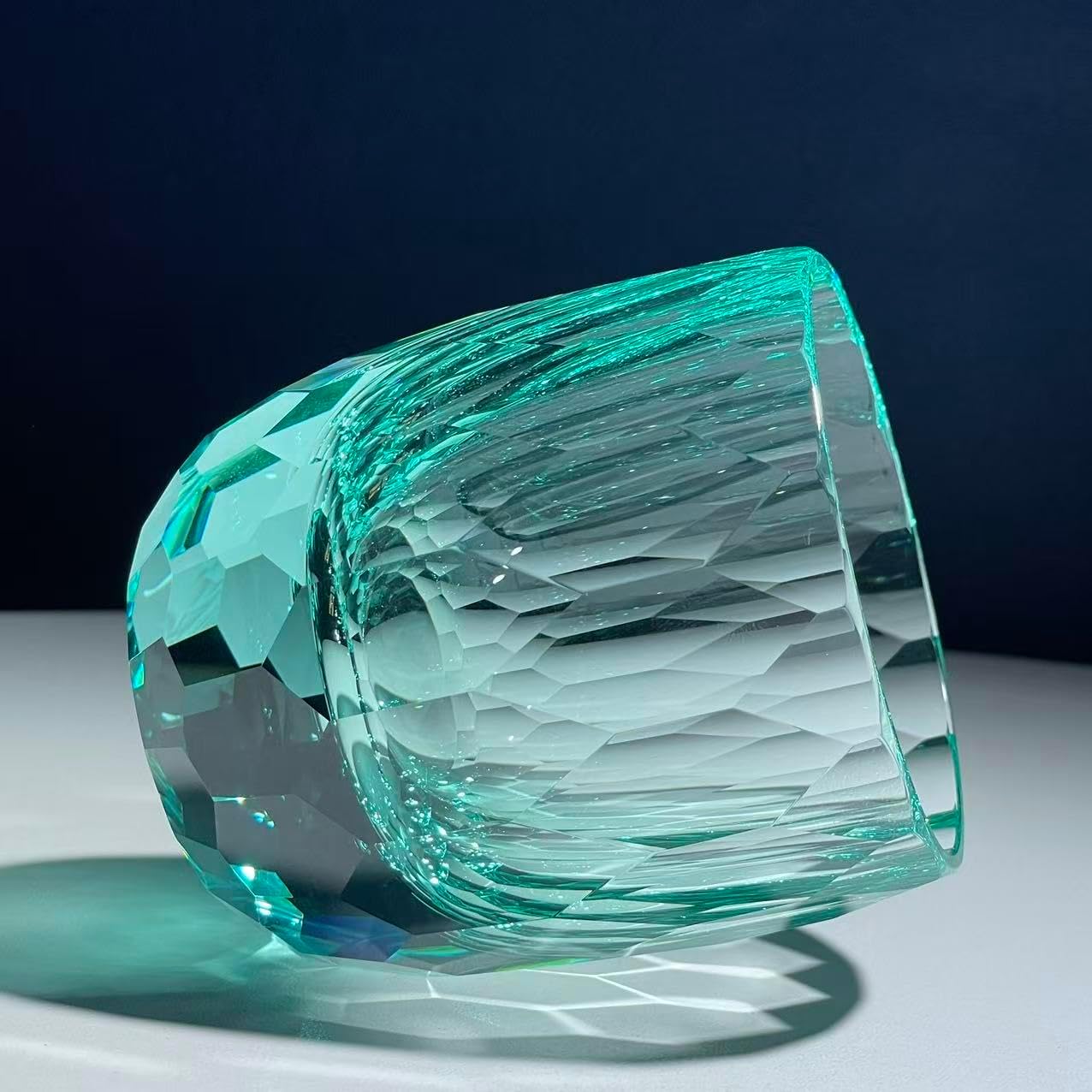 Elevate your drinking experience with this exquisite crystal whiskey glass featuring a stunning purple diamond pattern. The hand-blown craftsmanship creates a unique textured surface that catches and reflects light beautifully, making each sip a visual pleasure. The glass showcases an elegant geometric design with precise cuts that add depth and sophistication to your barware collection. Perfect for serving whiskey, bourbon, scotch, or your favorite spirits, this glass combines artistry with functionality. The substantial base provides stability while the carefully crafted rim ensures a comfortable drinking experience. The rich purple hue adds a contemporary twist to traditional glassware, making it an eye-catching addition to any home bar or dining setting. Whether you're enjoying a quiet nightcap or hosting an elegant gathering, this distinctive glass makes every drink feel special. The textured pattern not only enhances the aesthetic appeal but also provides a secure grip. Each glass is meticulously crafted to ensure consistent quality and lasting beauty. Ideal for both casual use and special occasions, this whiskey glass transforms ordinary moments into memorable experiences.
