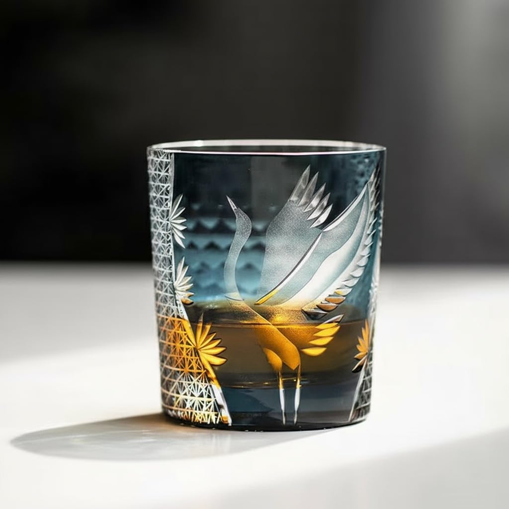 Edo Kiriko Whiskey Glasses are a celebration of Japanese glass-cutting heritage.Crafted by skilled artisans, each piece features hand-engraved geometric patterns that refract light into mesmerizing prismatic displays, turning every sip into a sensory journey. Made from high-quality crystal glass, these tumblers offer exceptional clarity, brilliance, and weight. The smooth rim and balanced base are designed to enhance the tasting experience—perfect for enjoying whiskey, bourbon, scotch, or a crafted cocktail. The 9 oz capacity ensures versatility for a wide range of spirits.