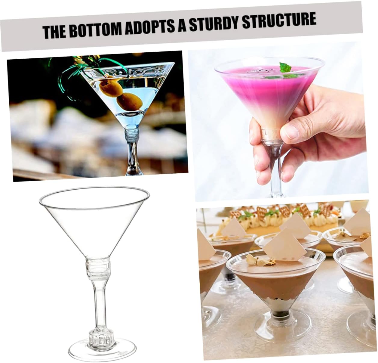 Package List Clear Glasses Features -Material:Plastic martini glasses stemless -Color:Transparent appetizer cups -Size:14.00X9.40X9.40cm/5.50X3.69X3.69in margarita glasses -Stylish appearance: the sleek and transparent design of these glasses adds of elegance to any event, making your drinks stand out beautifully stemless margarita glasses -Optimal size: designed with a capacity that meets your taste needs, these glasses help you enjoy your drinks without overindulgence or waste unbreakable dessert cups -Multipurpose: these glasses are suitable for a wide range of beverages, including cocktails, wine, and desserts, making them a versatile addition to your kitchen martini -Convenient cleaning: the design allows for easy cleaning, making these glasses a practical choice for busy lifestyles margarita cups disposable -Plastic: crafted from safe and plastic, these glasses are for no worry use, ensuring the safety of your guests outdoor margarita glassesGoods Informationstackable stemmed martini glasses Ideal for serving a variety of treats such as fruit jelly, puddings, and mousse, they are also for wine.martini plastic glasses Their transparent design allows the vibrant colors of your desserts to shine through, making them a stunning centerpiece for any dessert table.mini martini glasses plastic Elevate your dessert presentation with these clear cocktail glasses
