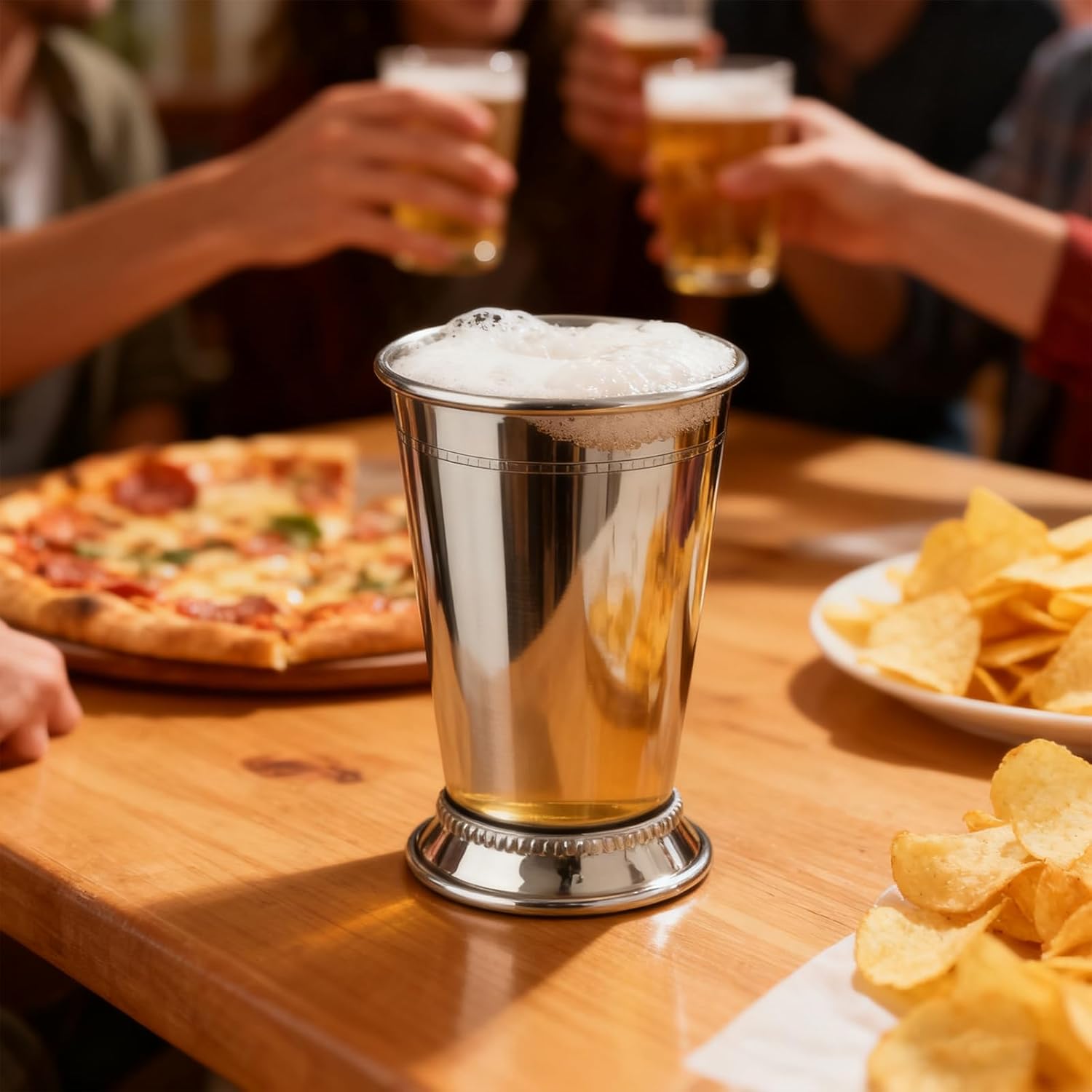 • The metal cocktail glasses add a touch of elegance to any stylish bar or tabletop. Perfect for mint julep, cocktails, whiskey, beer, juice, beverage, etc.