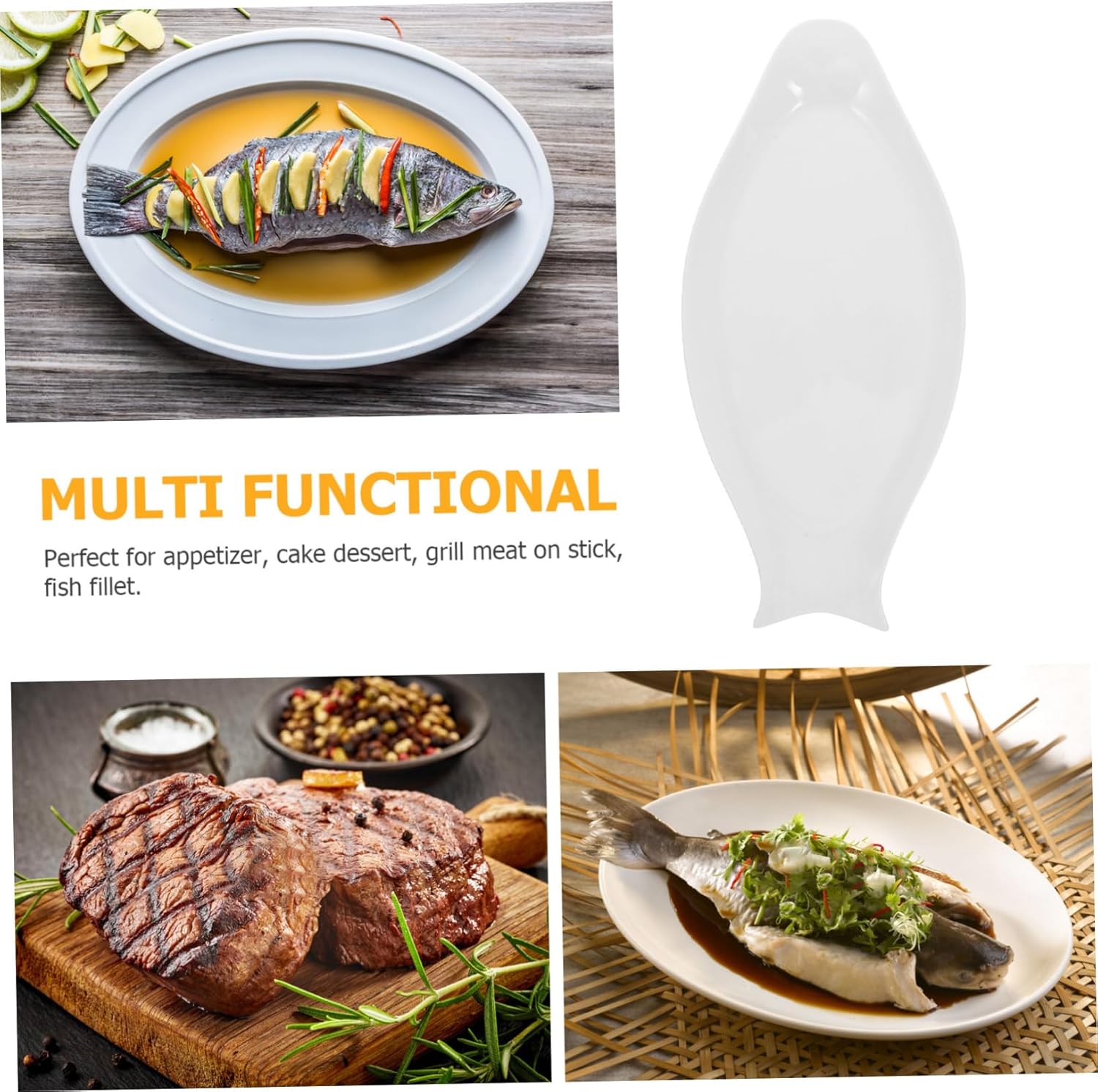 Package list: 1 x dish. Features - Material: ceramic tableware for fish. - Size: 40.00x19.00x2.50 cm/15.72x7.47x0.98in fish plates white -Ane: White serving plate fish - After 72 procedures and strict inspections, craftsmanship and details, created kitchen dishes were fish. - Ideal for your friends, families, oval fish dish. - It will deeply impress your guests with simple visual beauty oval steam. - The 16 inch capacity is suitable for most fish dishes of Chinese fish. - For appetizer, cake dessert, grilled meat on stick, fish fillet, sandwich, sushi rolls, slice of fruit or other snacks fish dishes. Product description: White fish shaped plate. Are you still looking for a suitable plate to serve fish dishes? Then you must not miss the ceramic plate. The whole plate is in the shape of a fish, and it is suitable for cooked fish.Fish Fish Wcter Coping it on the table makes the dishes beautiful and stylish