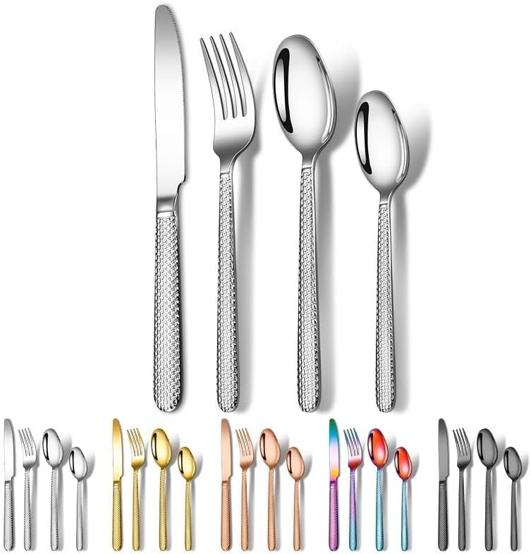 Material: Stainless steelPolishing process: cloth wheel polishing (mirror polishing)Set List: SetStyle: Light luxuryStainless steel material: 430 stainless steelSpecifications: [Silver] 4-piece setSpecifications: [Gold] 4-piece setSpecifications: [Rose Gold] 4-piece setSpecifications: [Rainbow Color] 4-piece setSpecifications: [Black] 4-piece setProduct quality level: first-classStyle: High-end luxuryColor: Silver/Gold/Rose Gold/Rainbow/BlackStyle type: Light luxury retroProduct category: Knife, fork and spoon set.About our BrandOur brand is GOODJAYVEN. We have always been committed to Household items. Do our best to bring more creative products to our customers.