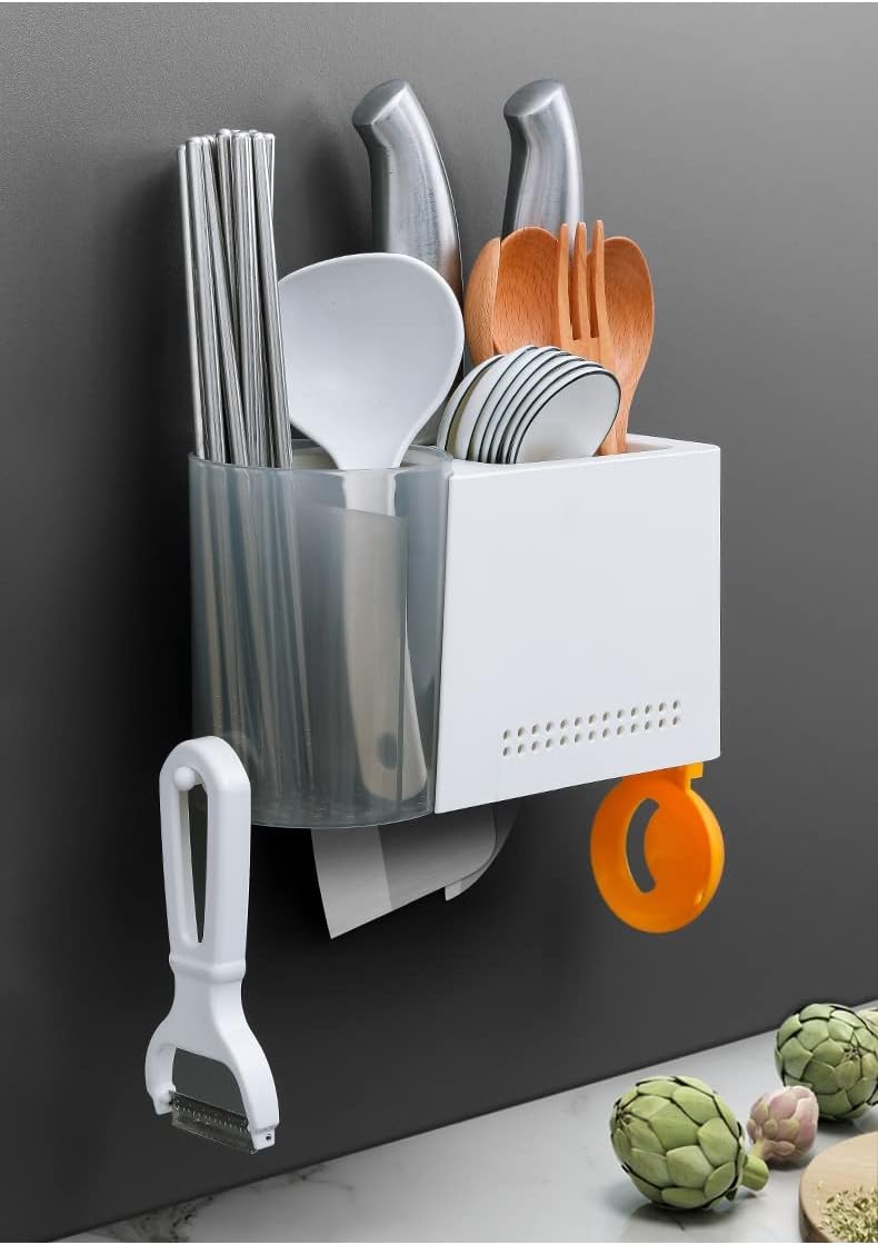Two large spaces, two water draining designs, chopsticks, knives and forks, neatly arranged.Made of plastic material, this tableware rack is wear resistant for long lasting used.Multifunctional storage, more convenient to use.Suitable for storing and keeping cooking utensils accessible and tidy on the counter-top.Wide application: Can store , chopsticks, scissors, spoon, etc. A good helper for kitchen.Specification:Material: plasticPackage Includes: 1 x chopsticks holderNote:Transition: 1cm=10mm=0.39inchPlease allow 1-3cm error due to manual measurement. pls make sure you do not mind before you bid.Due to the difference between different monitors, the picture may not reflect the actual color of the item. Thank you!The Utensil Holder holds small utensils, such as spoons, forks, and knives where you need them