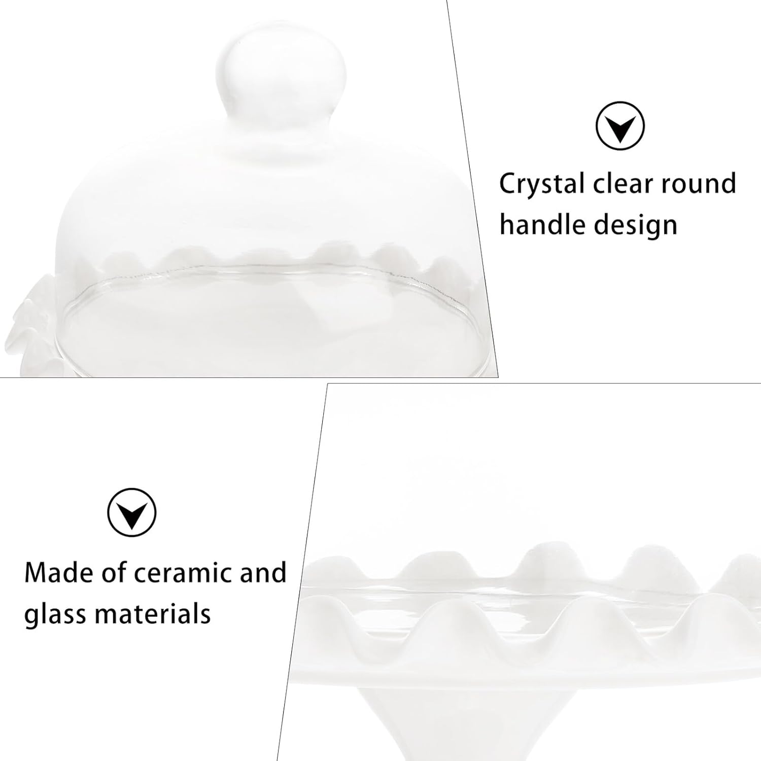Package Include 1 x glass cover 1 x ceramic tray Features - Size: About 22.50X20.50X20.50cm/8.84X8.06X8.06inch. -Product Info:Cake glass cover - Note: this set includes 1pc glass cover and 1pc ceramic tray Dessert Lid with Tray. - Material: Ceramic and Glass. - Color: White. - The material is ceramic and glass, very practical for long using time. - Can be given to your close friends or families as a good housewarming Glass Food Cover Plate. - Can be used to cover your cake, dessert, snacks and some other food Cake Glass Cover Plate. - Comes with a ceramic tray, it can be used to place bread, cake, pastry, etc Snack Tray Glass Lid. - Can keep your food clean and , convenient and practical Transparent Lid Food Tray.Goods DescriptionCover Pastry Tray Very practical and convenient to apply, which can help protect your food clean and tidy, safe and material, not damaging to your health.Snack Tray Glass Lid This is a free-lead transparent food glass lid and ceramic tray set.Glass Lid Cake Plate They can be used for birthday party, banquet, wine party and some other occasions