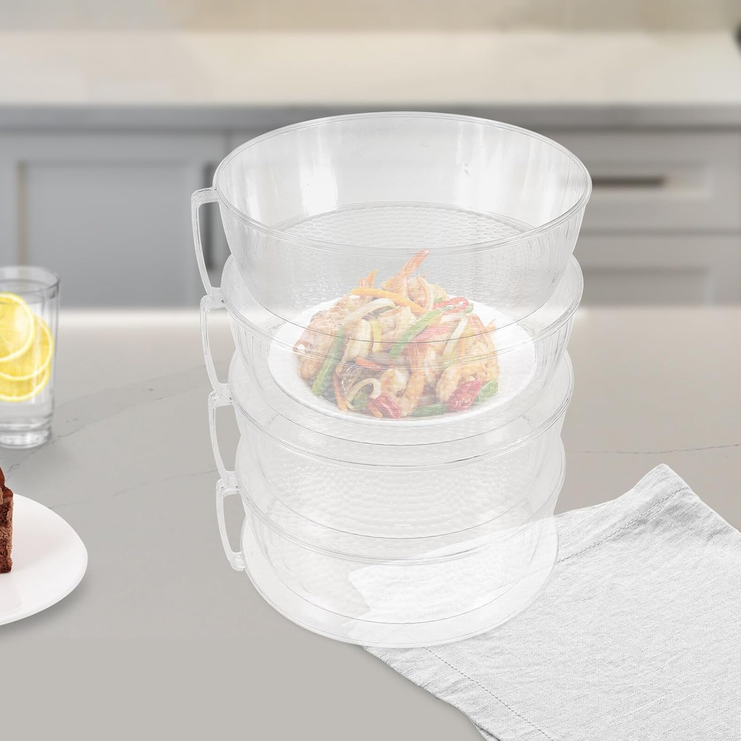 Package Include 1 x set of Food Cover Characteristics -Color:Transparent -Product Info:Insulated dish cover -Size:32.00X26.00X24.50cm/12.58X10.22X9.63in -Material:PET - The side handle makes the lid easy to be lifted, suitable for dessert tray, fruit plate, etc Clear Food Cover. - Brings great convenience to you, easy to hold and clean, the design is very stylish and generous, and sturdy Food Cover. - Easy to carry and can be used for a long time. Made of safe material, and practical for use. - With transparent design, you can directly observe the situation under the cover, simple but practical Food Protective Cover. - Made of PET, which features with stability and durability, very hard and smooth for usage dish covers.Goods DescriptionFood Transparent Cover Are you looking for a practical cake dessert cover ? , ! Our food cover must meet your needs.Plastic Food Cover Made of good PET material, and sturdy for use.Cake Cover Fine workmanship food cover practicality and durability