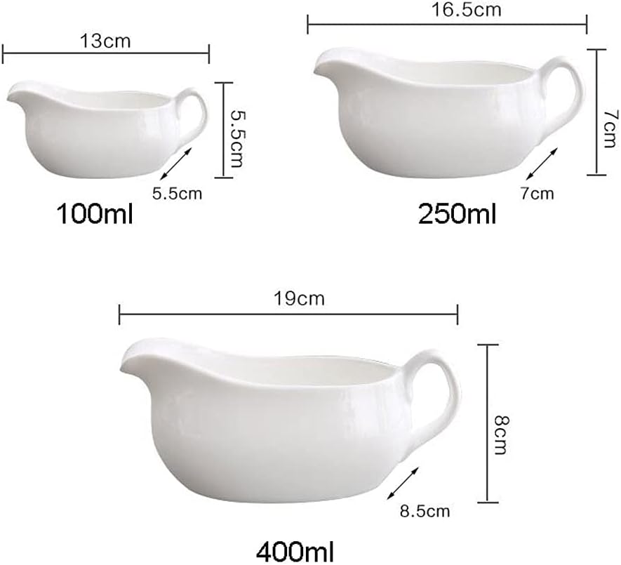 The gravy boat completes your dining arrangement experience and is absolutely suitable for any kitchen or blending with your tableware. You can put whatever you like, such as sauces or salad dressings.Applicable place: hotel, restaurant, kitchen, home, festivalProduct name: Gravy boatProduct material: CeramicProduct features: Ceramic material, sturdy and durable, easy to cleanColor: WhiteQuantity: 1 Gravy Boat