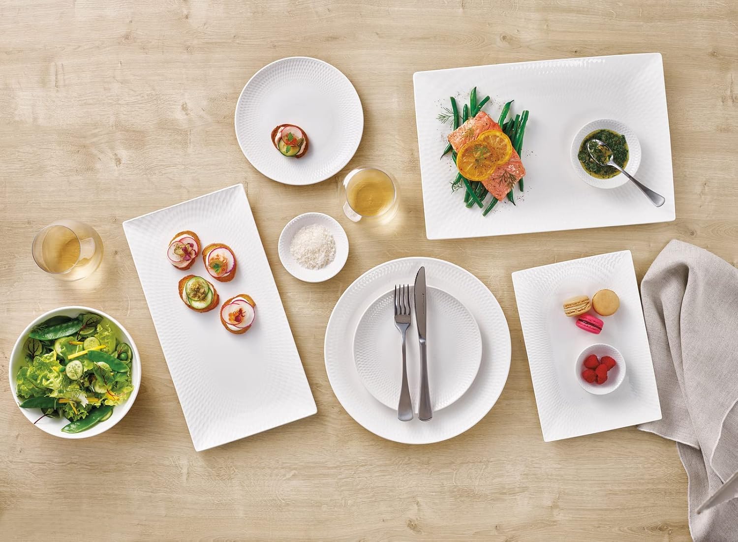 Dine with friends – that means: enjoy delicious cooking skills, toast with each other and laugh a lot. What could fit better than a high-quality yet understated porcelain with such a special feel? Simple yet elegant, it sets the scene for what really matters: good food and friendship. Shift work can be really beautiful: if you arrange delicate pastries or delicious appetizers on the three-tier cake stand for your friends! As an elegant highlight in classic white, this cake stand from the Maxwell & Williams Diamonds collection attracts everyone's attention, enriches the extensive coffee and table set with unique surface structure on any festively set table. Dimensions: • Length: 27 cm • Width: 27 cm • Height: 33.5 cm • Weight (without packaging): 1300g Material: • Porcelain. Item information: • Item number: DV0027 • EAN: 9315121746258. Features: • Hand wash recommended. • Oven safe • Microwave-safe. • Freezer safe. Package includes: • 1 M&W cake stand from the Diamonds series