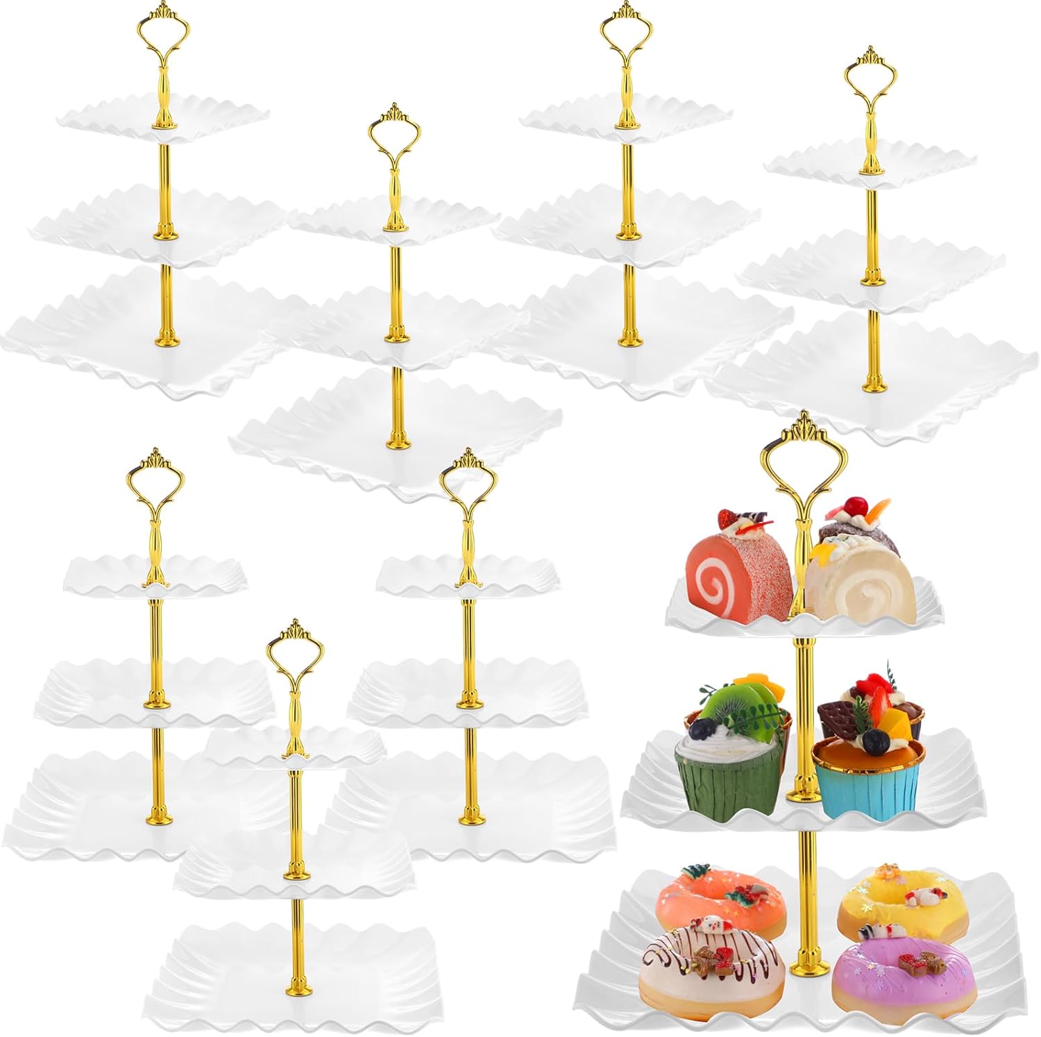 Features: Our classy and trendy cupcake stands offer an ideal choice as a present. It's a gift that adds charm to homes, kitchens, or party gatherings while also introducing a creative way to enjoy various desserts. Specifications: Material: plastic Color: white Size: about 13.4 inches height Each side of each layer: about 10, 8, 6 inches Package includes: 8 x Cupcake stands Notes: Manual measurement, please allow slight errors on size. The color may exist a slight difference due to different screen displays. Small parts included, please keep them away from little kids to avoid swallowing risk.