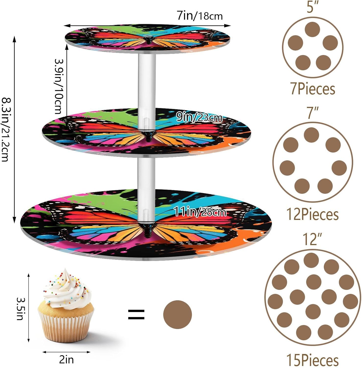 3 tiers round cupcake stand,acrylic cake tower stand holder macaron display rack cookie candy buffet desserts platter with non-slip and stable base for wedding, birthday, theme party. Due to the difference between different monitors,the picture may not reflect the actual color of the item,Please allow the slight color difference! We always doing our best to provide the best service and reliable products for every customer,Thank you very much! Have a good day!