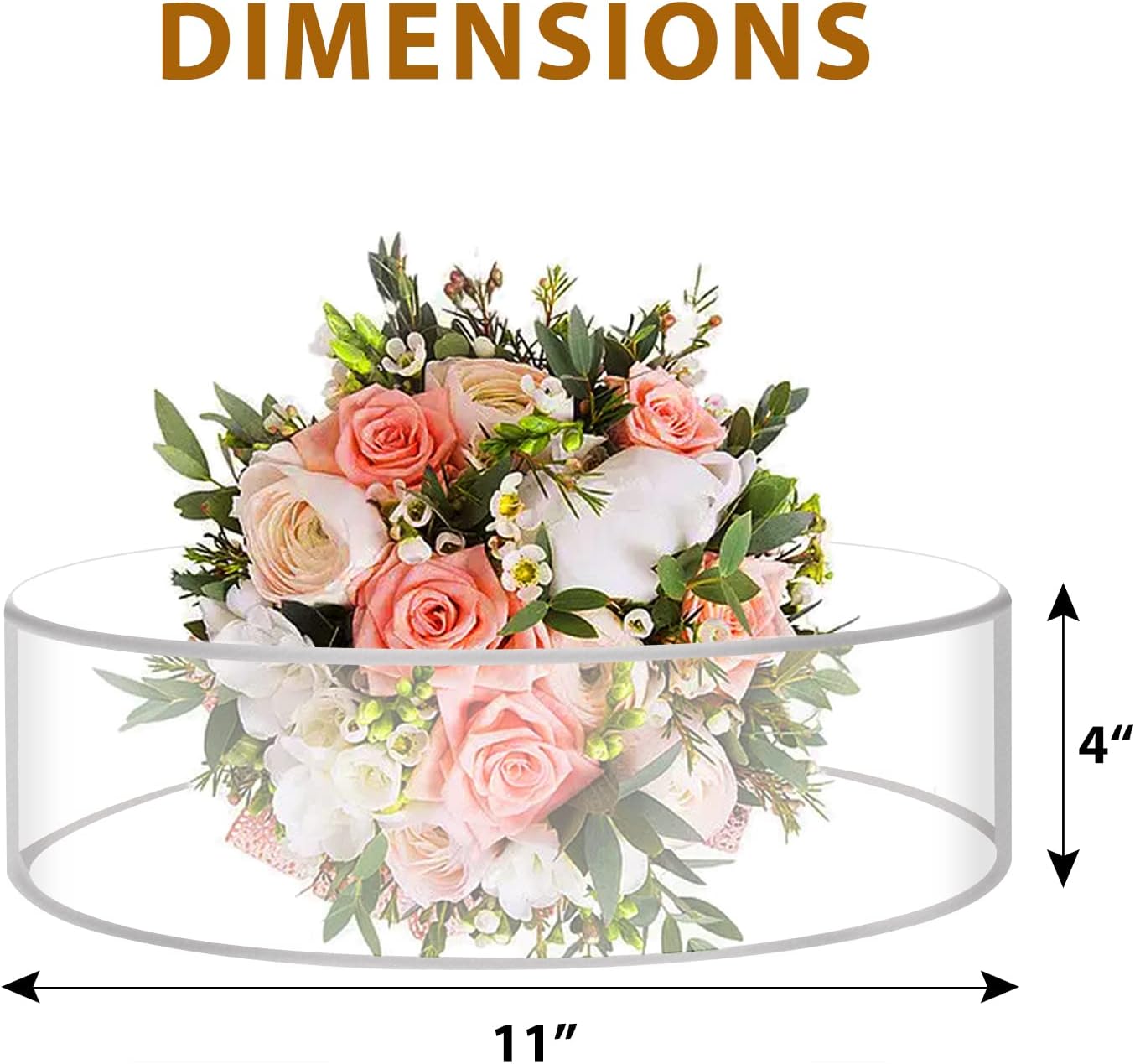 • [4" x 11" Clear Cake Stand] - 11 inch diameter fits mostly cakes; increase the display height by 4 inches to make your cake more visible, and put decorations in the hollow part which is the perfect size risers for decor your cake.