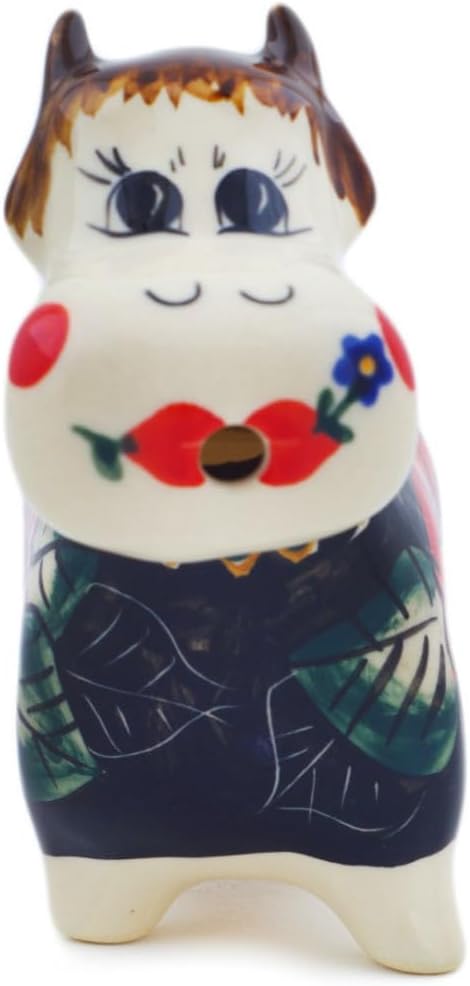 Genuine Polish Pottery handmade in Boleslawiec, Poland. Region celebrated for its long-standing ceramic tradition and artisanal craftsmanship.This authentic, hand-painted Polish stoneware Cow Shaped Creamer in the Poppy Passion pattern featuring a Signature UNIKAT design is handcrafted by local artisans in Boleslawiec using traditional hand-painting and high-temperature firing techniques for lasting durability and everyday functionality.UNIKAT Signature Design:UNIKAT pieces feature intricate hand-painted artwork signed by the artist and produced in limited quantities, making each one a collectible work of art.Certificate of Authenticity:Includes an official certificate verifying the handmade origin and authenticity of the piece.Care Instructions:Your order includes care instructions and helpful information, especially useful when gifting Polish Pottery.Dimensions:4.6" high, 2.3" wide, 6" long (max outside edge or handle).Capacity: 5 oz (filled to the rim).Certified Polmedia Polish Pottery Features:* Lead & Cadmium Free: Safe for everyday use.* Microwave Safe: Heat food or drinks with confidence.* Dishwasher Safe: Pattern will not fade.* Oven Safe (up to 480F): Excellent for baking and reheating.* Freezer Safe: High-fired stoneware handles temperature changes.* Chip & Scratch Resistant: Durable for daily use.* Hand-Painted Artistry: Decorated by skilled artisans.* Never-Fade Colors: Patterns remain vibrant forever.The Essence of Polish Pottery:For generations, artisans in Boleslawiec have crafted stoneware valued for durability, heat distribution, and long-lasting beauty. This tradition continues today in every piece of Polish Pottery.
