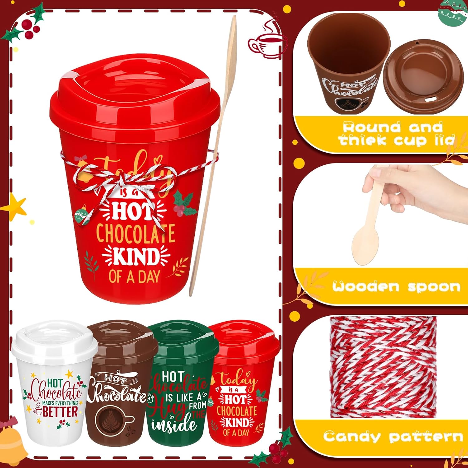 Features: Suitable Gifts: Ideal as Christmas gifts for friends, mothers, and other relatives, as souvenirs for company annual meetings, holiday gifts for colleagues, gifts for party guests, and birthday gifts. Decorative Gifts: This set strikes a balance between practicality and aesthetics. It adds a touch of sophistication to everyday drinks and suitable accommodates small surprises as a gift. Specifications: Material: Cups: plastic Spoon: wood Color: red green, white, brown Size: Rope: 164 ft / 50 M Capacity: Cups: 12 oz Package includes: 1 Roll x rope 24 x Plastic cups 24 x Wooden spoon Notes: Manual measurement, please allow slight errors on size. The color may exist a slight difference due to different screen displays