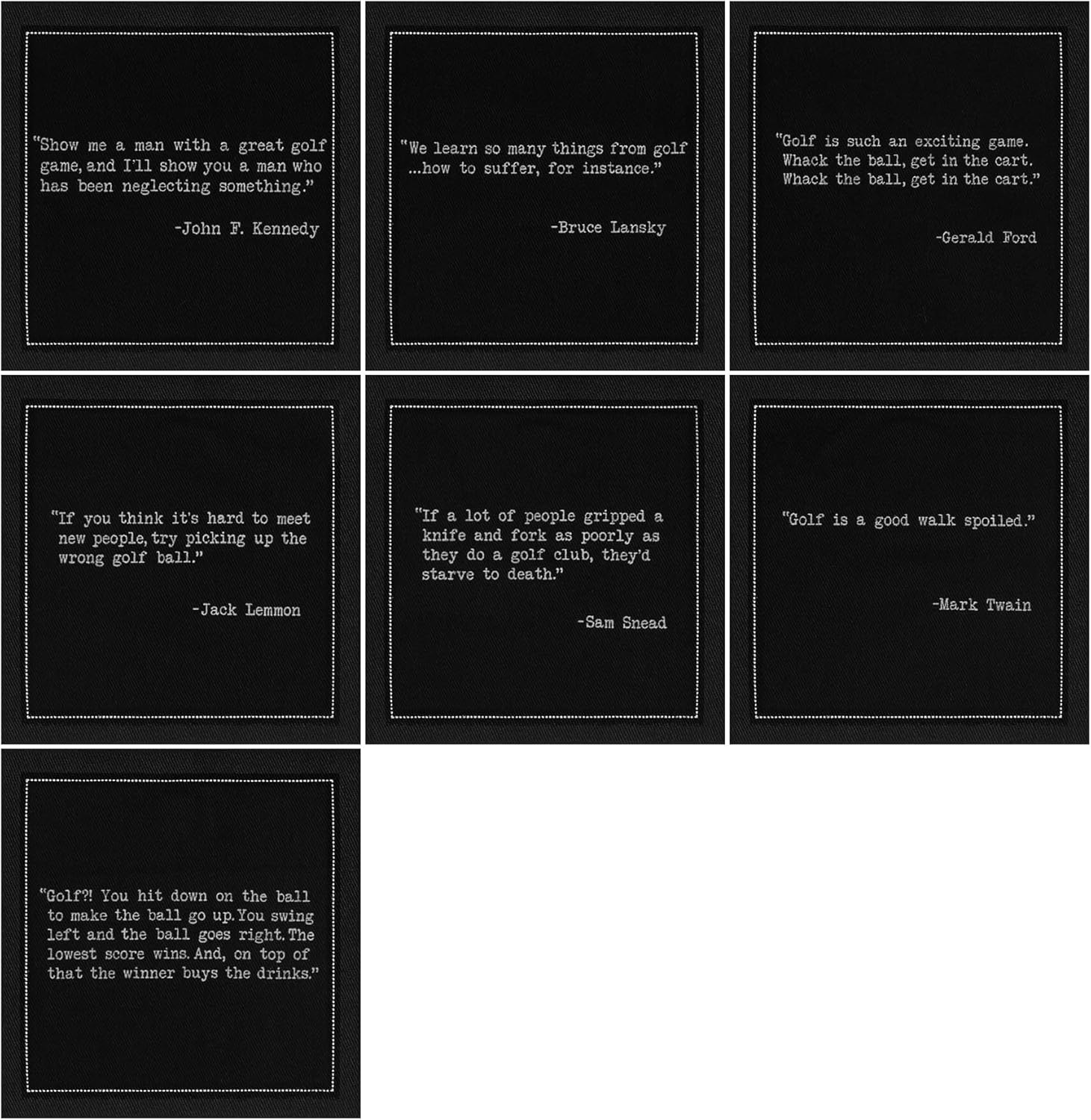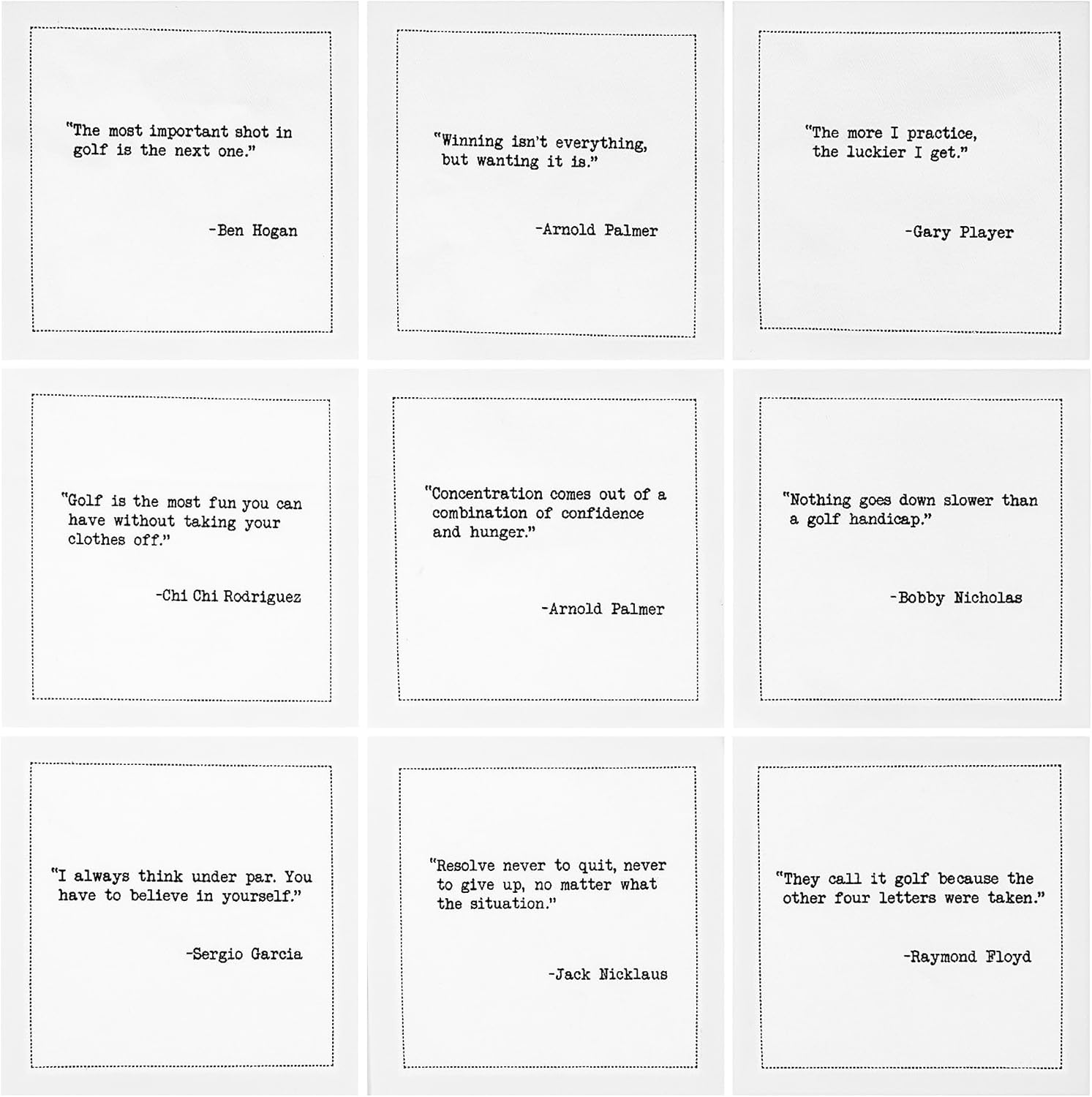 Elevate your golf-themed gatherings with a bundle of Five Star Napkins Golf Humor Quotes and Five Star Napkins Golf Legends Quotes. The Golf Humor Quotes set includes 25 unique quotes that poke fun at the game, making them perfect for light-hearted gatherings. Meanwhile, the Golf Legends Quotes feature inspiring sayings from renowned golfers, adding a touch of sophistication and admiration for the sport. Both sets are crafted from 100% organic cotton, ensuring eco-friendliness and luxury. Each pack contains 50 napkins, with two of each quote, making them ideal for entertaining friends and fellow golf enthusiasts.