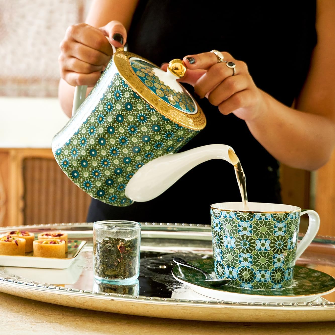 Enhance your tea-drinking experience with the Images d'Orient 4 Tea Cups & Saucers. Crafted from premium porcelain, this elegant set includes four 210ml (7.1 oz) tea cups with matching saucers, designed for both beauty and function. Featuring the exquisite patterns these cups add a touch of sophistication to any tea ritual. Durable, microwave safe, and dishwasher safe, this set is perfect for everyday use or special gatherings.