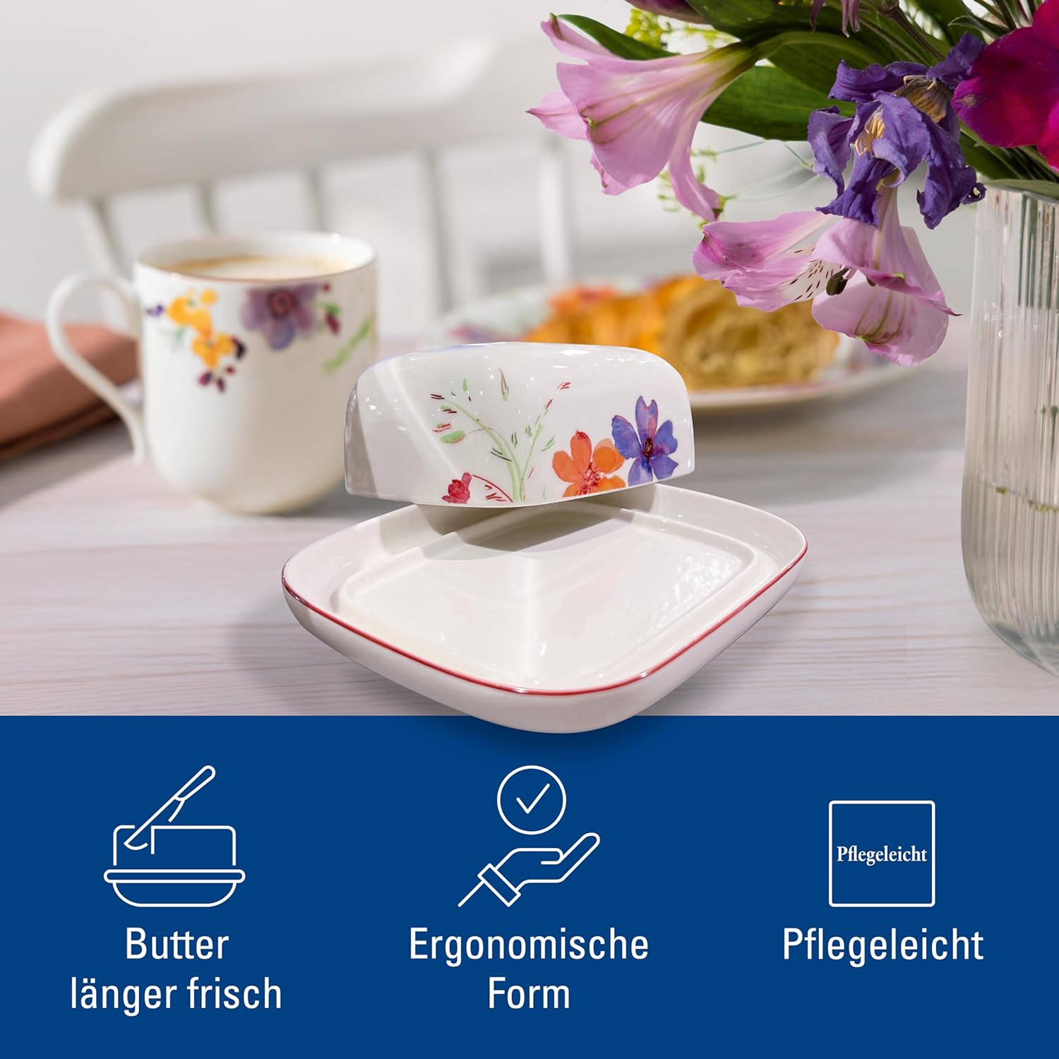 The Mariefleur Basic collection by Villeroy & Boch brings the charm of a blooming summer garden to the table. Inspired by colorful watercolors, the elegant premium porcelain combines high quality with an artistic floral decoration. The gentle color gradients in purple, pink and green set stylish accents and ensure a harmonious table design. In addition to its aesthetic appeal, the collection impresses with dishwasher safe, microwave safety and durability - perfect for everyday use and special occasions. Mariefleur Basic is the ideal choice for anyone who appreciates design and functionality in perfect balance.