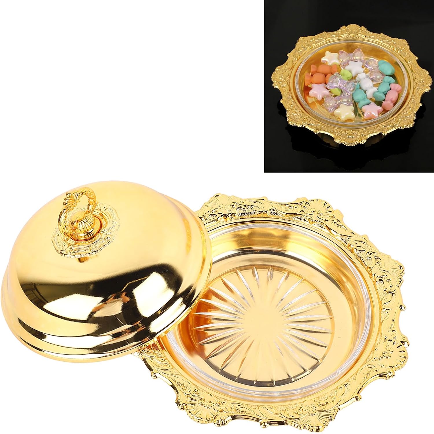 1. PREMIUM MATERIALS: The butter serving bowl is made of glass and alloy materials, and odor sturdy and . Removable and easy to clean.2. Versatile: Exquisitely designed butter dish for butter sticks, cheesecakes or cream cheese. Store it in the refrigerator, use it on the kitchen counter or dining room table.3. MULTIPURPOSE: The butter dish has a simple and unique shape that can be used without the lid and kept close at hand. You can also turn the lid upside down and use it for small fruits and more.4. VINTAGE AND ELEGANT: This butter dish features an elegant vintage design and is suitable for daily use and parties. This makes it a beautiful addition to any table and suits any table decoration.5. : The butter dish container with lid is suitable for any scene and provides a unique decoration. Suitable for Christmas, birthday, wedding, housewarming, Mother's Day, etc.Specification:Item Type: Butter DishMaterial: Alloy, Glass Packing List: 1 x alloy container1 x glass container1 x alloy lid1 x lid handle