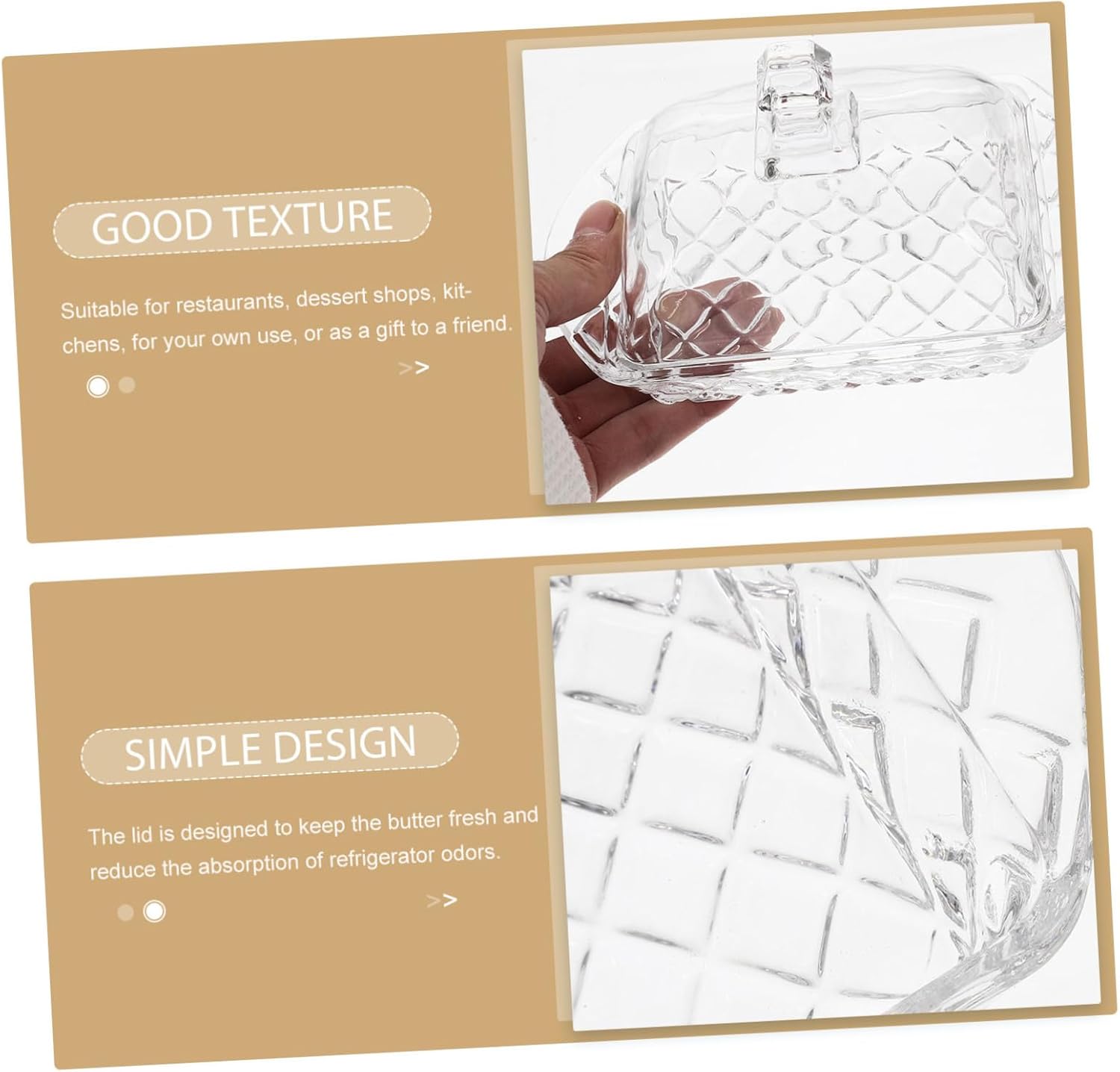 Package Include 1 x Butter Dish 1 x Glass Lid Features - Size: 17.00X10.50X9.50cm/6.68X4.13X3.73in butter storage dish with lid -Product Info:Fresh box -Material:Glass cheese dish with lid -With this reusable butter dish, you can store the butter to not be tainted by other odor butter tray with lid. -With the lid design, this Covered Butter Dish can keep your cheese or butter clean and safe clear glass butter dish. - ColorTransparent butter keeper dish -This butter box is made of high-end materials, which makes more and safe glass butter dish with cover. -This butter keeper perfectly matches most kinds of butter, to satisfy your daily use butter dish with glass lid. -You will find your kitchen neat and orderly after using it, improving your life greatly transparent butter tray.Goods Descriptionhousehold butter dish This is a Glass Butter Dish with lid made of high-class and smooth material, sturdy and practical for a use.butter dish with glass lid While ensuring a smooth appearance, it also allows you to use it with peace of mind.butter holder with lid This is a must-have item in your home.glass butter holder Perfect for restaurants, dessert shops, kitchens, for your own use, or as a to a friend
