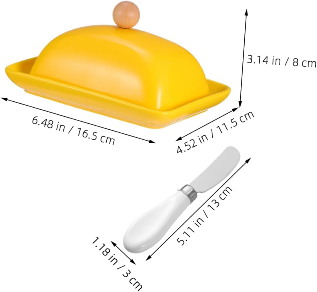 Package List 1 x butter dish 1 x cutter Features -Size:13.00X3.00X1.50cm/5.11X1.18X0.59in(cutter) butter dishes with lid -Color:Multi counter butter keeper -Size:16.50X11.50X8.00cm/6.48X4.52X3.14in(dish) butter plate with lid -Material:Stainless steel, wood, ceramic butter storage container - This butter holder has a smooth surface, and fine details, and it's easy to clean, making your life convenient airtight butter dish with lid. - Proper size, this butter dish is convenient access to your butter right when you need it airtight butter holder. - and convenient to use, not easy to break or deform, reusable and can be applied for longtime butter dish with lid for countertop. - This butter dish with lid can be used to store butter, can also be used to store dessert, etc butter keeper tray. - Elegant design of this dish makes it a perfect addition to any table setting, adding a touch of sophistication to your dining experience butter container.Goods Informationbutter keeper tray This is a Ceramic Butter Dish, made of sturdy material, and can be used for a long time.large covered butter container Elegant appearance makes it an excellent addition to your kitchen, refined and functional.butter dispenser Smooth surface and corners, fine workmanship, thick and .covered butter dish with lid The design of the lid is to keep the butter fresh