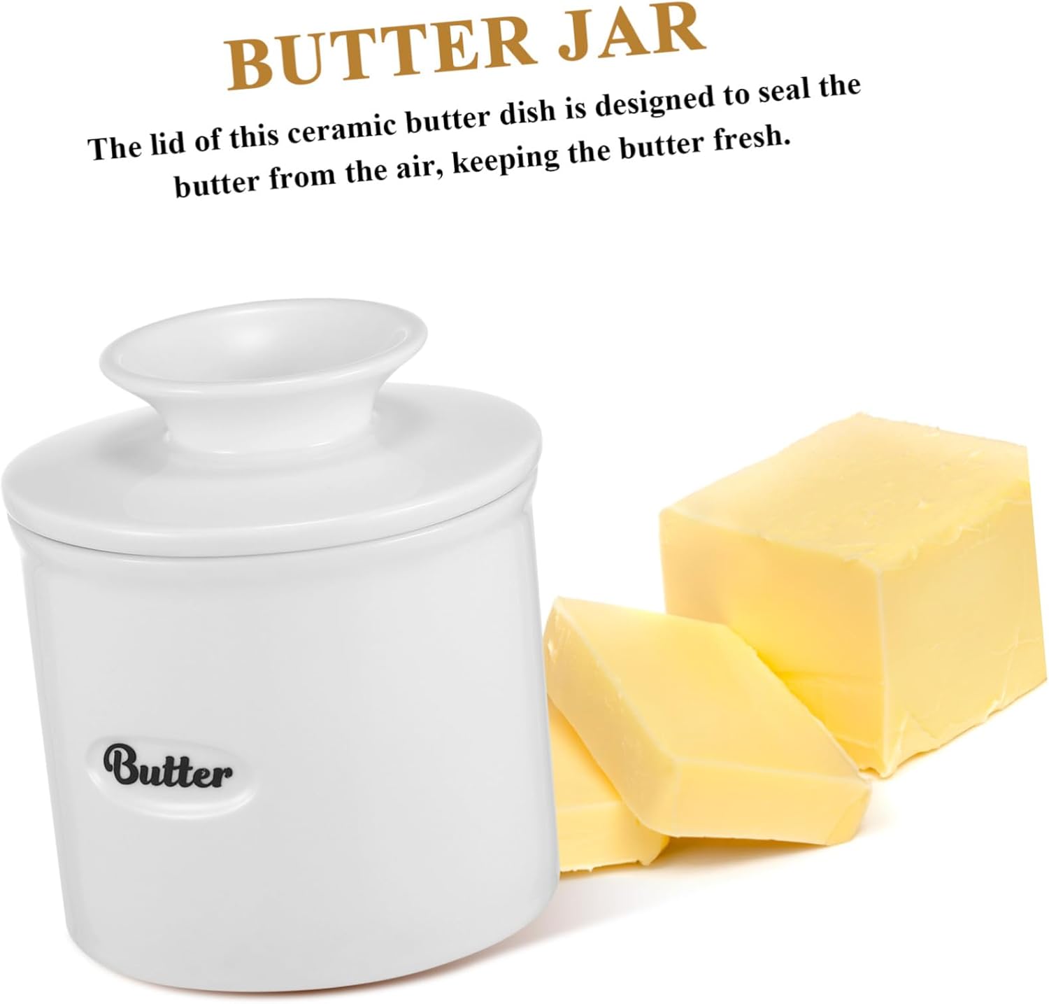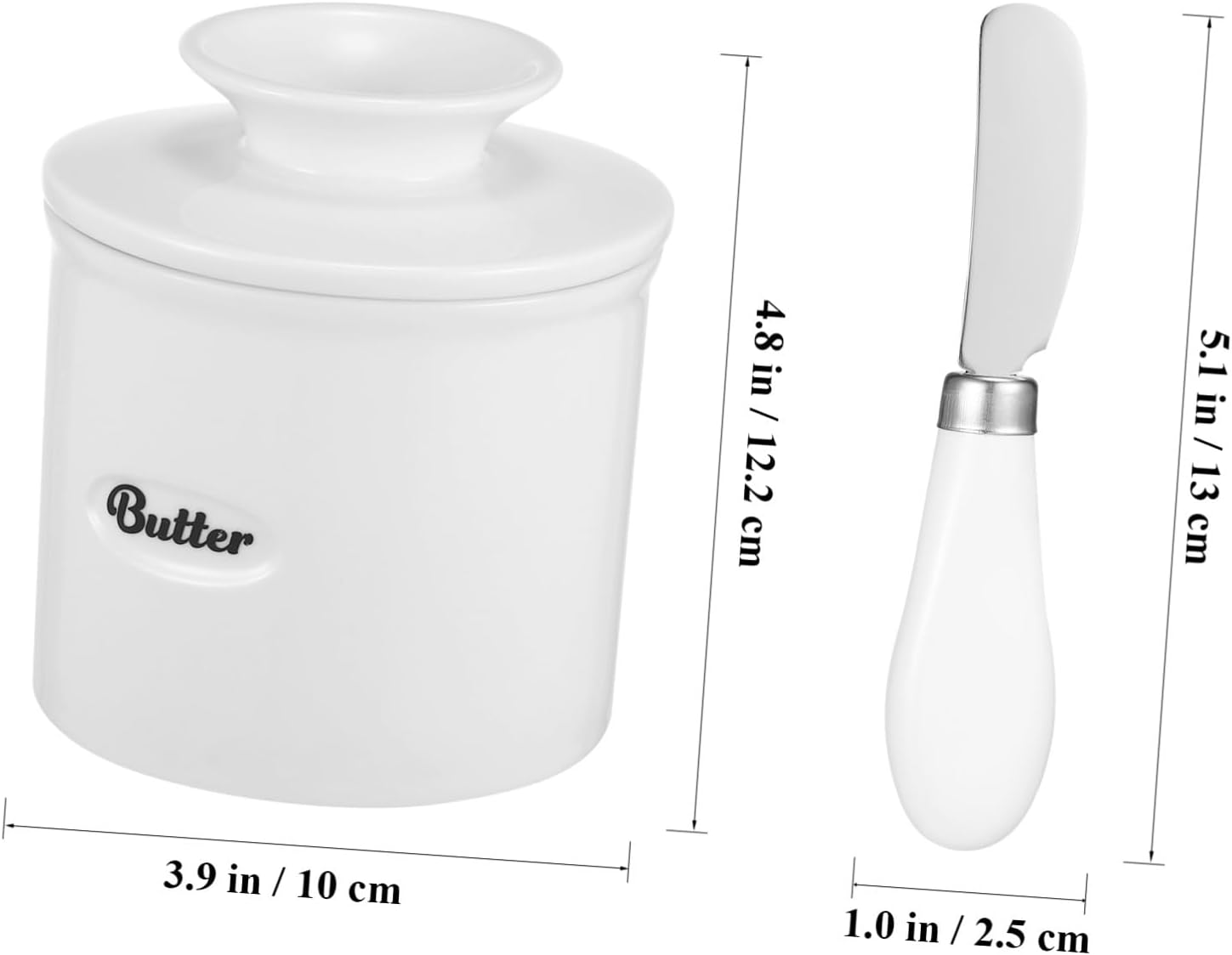 Package Include 1 x Ceramic Butter Crock 1 x Stainless Steel Tool Features - Tool Size:13.00X2.50X1.20cm/5.11X0.98X0.47in kitchen butter crock -Butter Crock Size:12.20X10.00X10.00cm/4.79X3.93X3.93in butter keeper -Material:Ceramic, 410 Stainless Steel porcelain butter jar -Capacity:500ml porcelain butter keeper crock -Color:White butter keeper crock By using this porcelain butter keeper crock, you can enjoy your soft and butter butter keeper dish. With smooth edges design, this butter dish is easy to clean, and can be put in the freezer and dishwasher ceramic butter jar. This butter keeper crock with stainless steel tool is wonderful partner for kitchens, counters, restaurants ceramic butter container. The kitchen butter crock uses anti-skid bottom design, which can be placed on the countertop steadily french butter dish. The ceramic butter dish has a large capacity design, which can well meet your daily use needs butter container.Goods Descriptionbutter keeper And it keeps butter on toast, biscuits, waffles, pancakes, etc.ceramic butter holder Are you still looking for a practical butter dish? Please consider choosing this product.ceramic butter crock This product is a ceramic butter container with a tool.butter crock It keeps hard and spreadable in a safe and healthy way without smudging your countertop