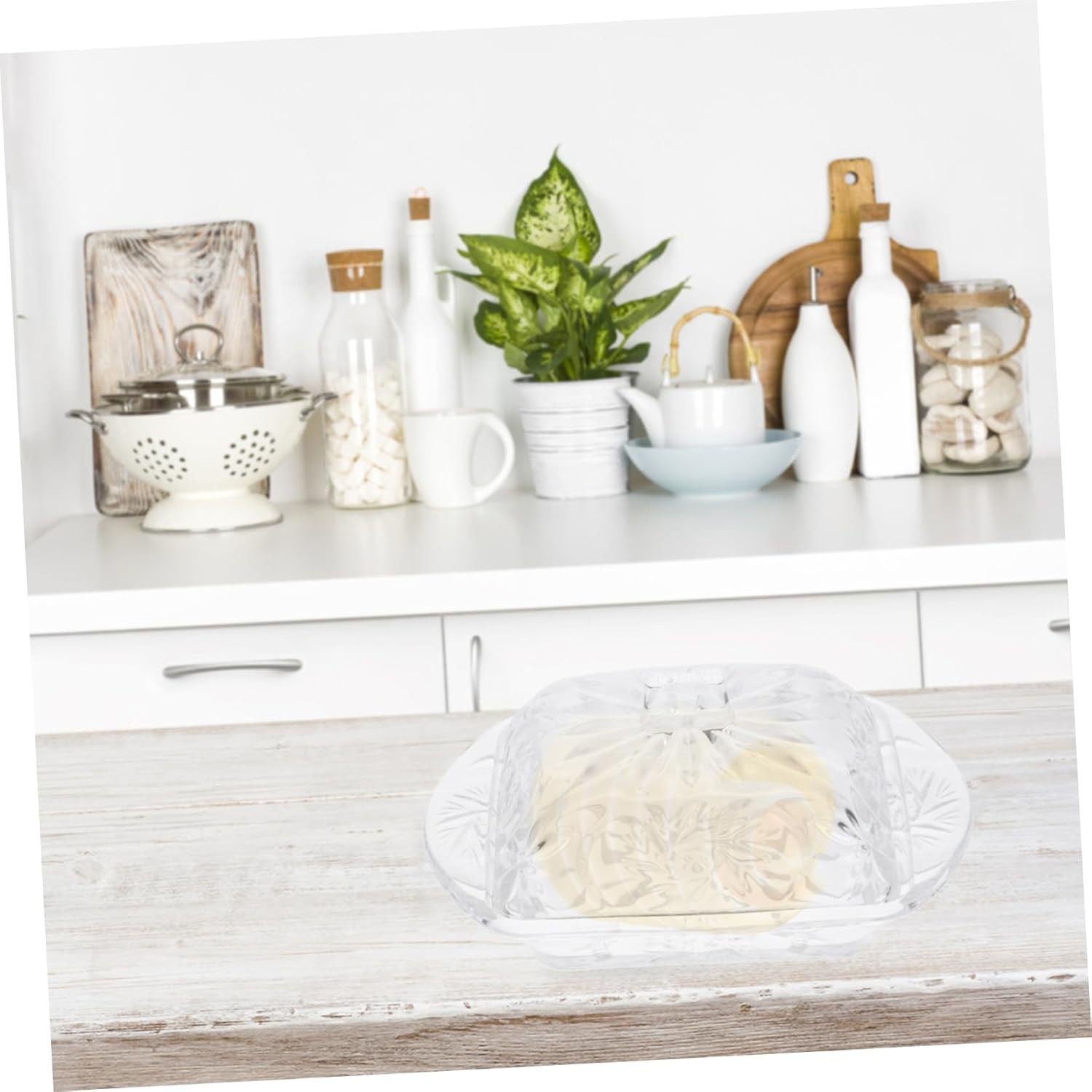 Package List 1 x Butter Box Characteristics -Size:17.00X10.50X8.50cm/6.68X4.13X3.34in butter storage boxes -Color:Transparent cheese keeper -Material:Glass butter storage container - The elegant appearance makes it a great addition to your kitchen, delicate and butter storage holder. - This butter tray is made of glass material, and for use glass butter dish. - Suitable for restaurant, dessert shop, kitchen, use it yourself, or present it to your friends as a present butter container. - Multi-purpose, great for storing butter, cheese, desserts, etc. in the kitchen, keeping food fresh glass butter container. - Come with a clear lid, it can keep your food or butter clean, and to use large butter dish with lid.Goods Descriptionbutter keeper Smooth surface and corners, fine workmanship, thick and .cheese container The design of the lid is to keep the butter fresh and reduce the absorption of peculiar smell.butter container This multi-function Butter Tray is made of materials, and can be used for a long time