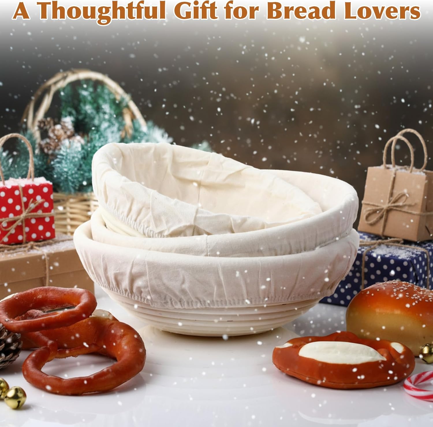 Features: Multiple Sizes for Every Recipe: this proofing basket set caters to small, medium, and large bread recipes, whether you're baking French bread, artisanal sourdough, or gluten-free loaves. An essential accessory for every baker, from beginners to seasoned professionals Essential Baking Accessory: this versatile set is a must-have for every kitchen, taking your baking to the next level. Whether you're a novice or an experienced baker, these proofing basket Suitable for use as part of a sourdough starter kit, bread baking set, or bakery tools collection Specifications: Material: rattan, Linen Liners Size: 8 inches, 9 inches, 10 inches Package includes: 2 × 8-inch round bread proofing baskets with linen liners 2 × 9-inch round bread proofing baskets with linen liners 2 × 10-inch round bread proofing baskets with linen liners Key Features: Premium 6-pack banneton bread proofing basket set with three popular sizes: 8 inch, 9 inch, and 10 inch. Handcrafted from natural rattan cane for excellent dough fermentation and crisp artisan bread crust. Includes fitted linen liners to prevent sticking and keep the traditional spiral ring patterns intact. Perfect for sourdough proofing, and rustic country bread making at home or in bakeries. Durable, reusable bread making supplies for beginners and experienced bakers. Notes: Manual measurement, please allow slight errors on size. The color may exist a slight difference due to different screen displays