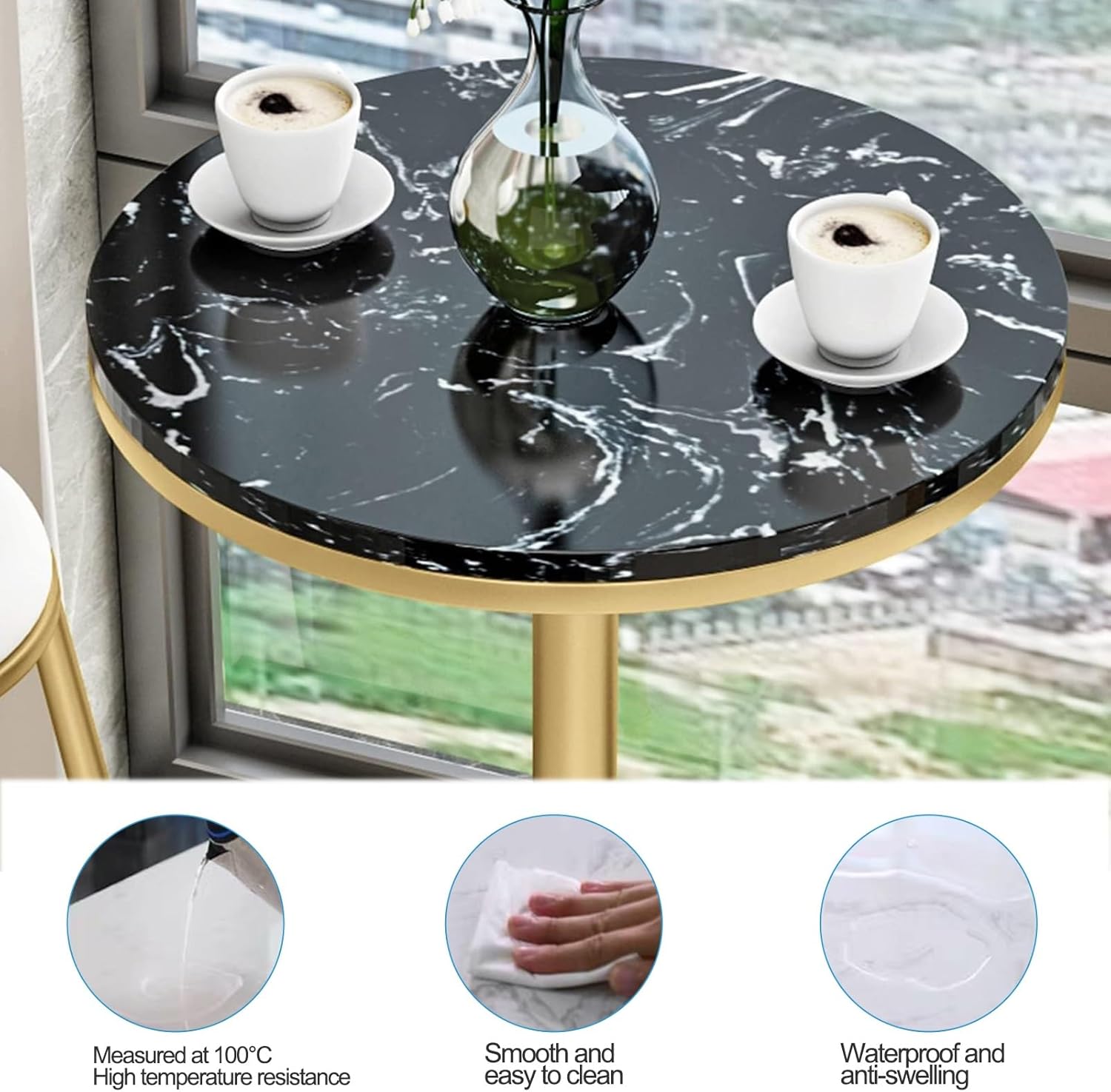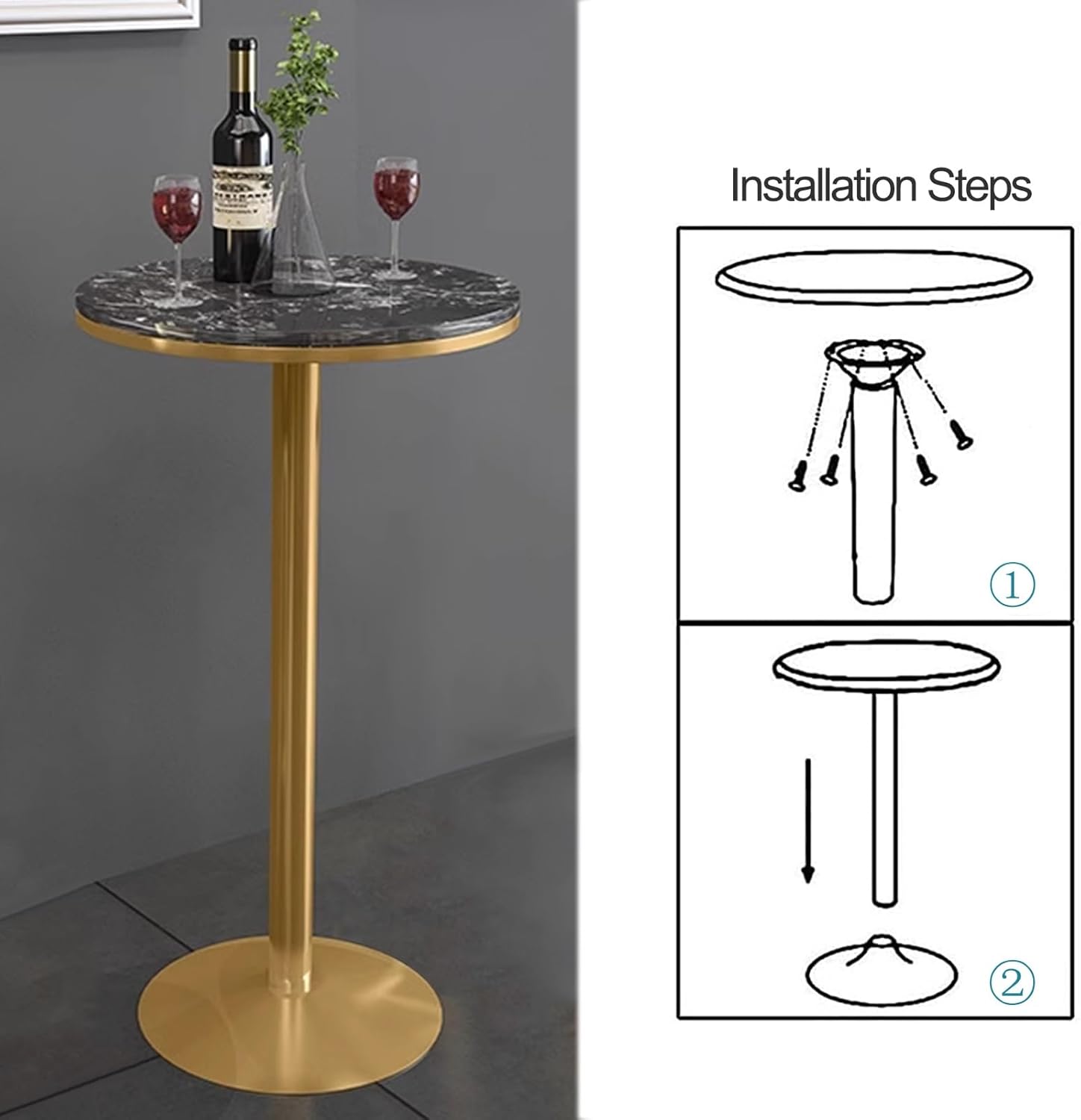 Black Round Bar Table Smooth surface for easy maintenance / Elegant appearance fits almost all decoration styles. Tabletop diameter 55cm, the tabletop is also spacious enough to store different items, such as coffee, books, computers and so on. suitable for a variety of scenes, bars, clubs, restaurants, kitchens, homes, outdoor and more. After-sales service: If you have any questions, please contact us in time, we will reply you within 10h. And we will strive to provide you with high-quality products and satisfactory services.Note:This product does not require special maintenance and maintenance. for daily cleaning, Simply wipe with a moist clean cloth.