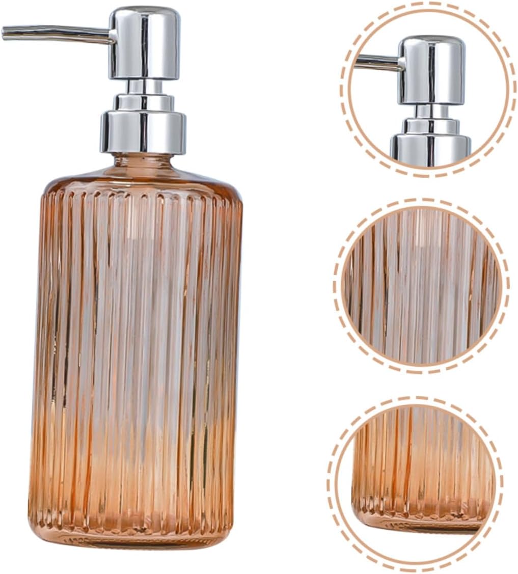 Package List 3 x Shampoo Bottles Features - Size: 20.20X8.00X8.00cm/7.94X3.14X3.14in Sub-packing Lotion Bottle -Product Info:Bottled - Material: Dispenser - Color: Orange, gray, transparent Shampoo Bottle - Adopted glass material, portable and for long time use Bathroom Supplies. - This refillable dispenser pump holds soap, dish soap, hand soap or essential oils, etc 500ml Bottle. - Suitable for multiple usage such as hand soap, dish soap, shampoo, body , hair lotion, etc Glass Pump Bottle. - Can be a great decoration to your bathroom, or as a travel companion to your hotel Refillable Shampoo Bottle. - When you press the pump, the hand soap will be dispensed and easy to apply Pump Bottle.Goods DescriptionKitchen Soap Dispenser This glass pump bottle is an attractive and practical kitchen or bathroom dispenser pump.Shampoo Bottle Dispenser Great for hand , massage oils, bath cream, shampoo and so on.Shampoo Bottle Containers style appearance, which is delicate and modern