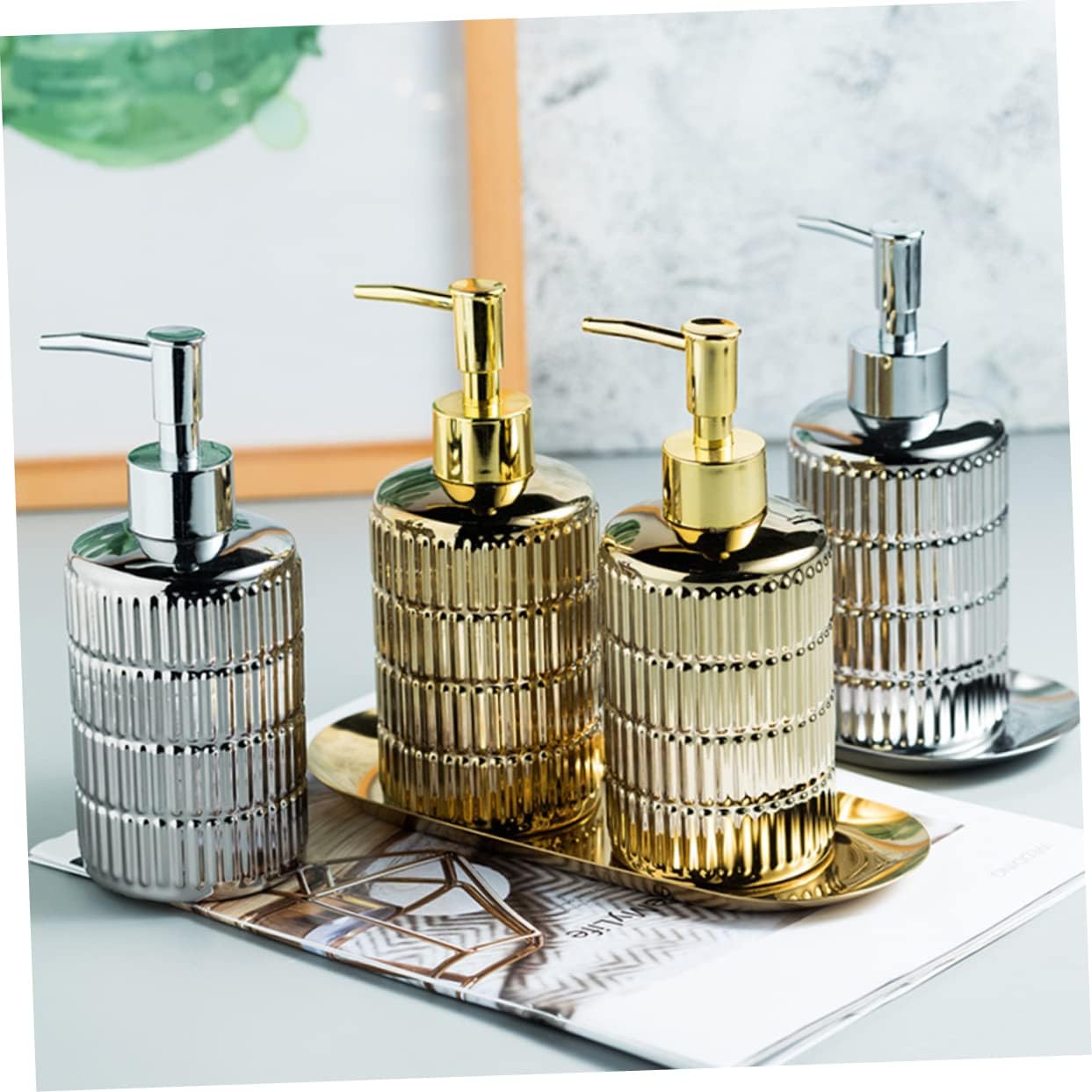 Package Include 1 x set of sub bottles Characteristics - Note: This set contains 2 bottles and a tray Shampoo Containers. - Material: Ceramic Lotion Bottles. - Size: 17.50X8.00X8.00cm/6.88X3.14X3.14inch Bottles for. - Easy to clean and , stylish appearance, comfortable and Pressing Bottles. - Light weight, design, easy to press Lotion Holders. - Smooth texture design, light and easy to use, not slippery hand Containers. - Made of first-class ceramic material, more and Shampoo Bottles. - , sealing to avoid liquid leakage Dispensers.Goods DescriptionHolders It is made of and material for long term use.Pressing Bottles Fine craft and delicate design make it suitable for lotion storage and home decoration.Shampoo Bottles for home and hotel.Dispensers This item is a set of creative bathroom dispensing bottles for lotion, , shampoo or others storage