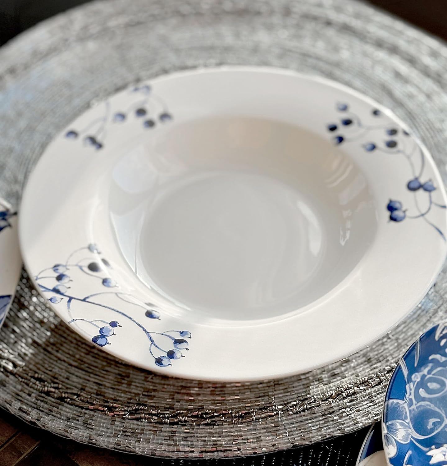 A Bone China Dinnerware Set of 20 for 4 persons is a comprehensive and elegant collection designed to enhance your dining experience. Here's an overview of what you might expect from such a set: Material: Crafted from bone china, this dinnerware set offers a luxurious and delicate appearance. Bone china is prized for its translucency, lightweight nature, and durability. Design: The design of the dinnerware set can vary widely, ranging from classic and timeless patterns to more contemporary and modern styles. It may include intricate detailing, fine patterns, or even simple and elegant aesthetics. Set Size: The set typically includes enough pieces to serve four individuals, with each place setting comprising dinner plates, salad plates, soup or cereal bowls, teacups, and saucers. This ensures a coordinated and cohesive table setting. Versatility: Bone china dinnerware is versatile and can be suitable for both casual and formal dining occasions. The design and style of the set will influence its overall versatility. Occasions: While suitable for everyday use, this dinnerware set is often chosen for special occasions, celebrations, or when you want to create an elegant dining atmosphere. Quality Craftsmanship: Bone china is known for its high-quality craftsmanship. The pieces are often carefully manufactured to ensure a smooth and flawless finish, adding to the overall sophistication of the set. Collectible: Depending on the brand and design, bone china dinnerware sets can be considered collectible items. Some brands have a long-standing reputation for producing exquisite bone china pieces. Care: Bone china is delicate and should be handled with care. Many bone china items are not suitable for microwave use and are recommended for hand washing to preserve their beauty. Brand Recognition: Certain brands are renowned for their bone china collections. The brand name may be associated with quality, craftsmanship, and a particular design aesthetic. Packaging: The set may come in a well-packaged box, ensuring that each piece is protected during transportation and storage. In summary, a Bone China Dinnerware Set of 20 for 4 persons offers a combination of elegance, versatility, and quality craftsmanship. It provides a complete dining solution for a small gathering, special occasions, or for those who appreciate the sophistication of bone china.