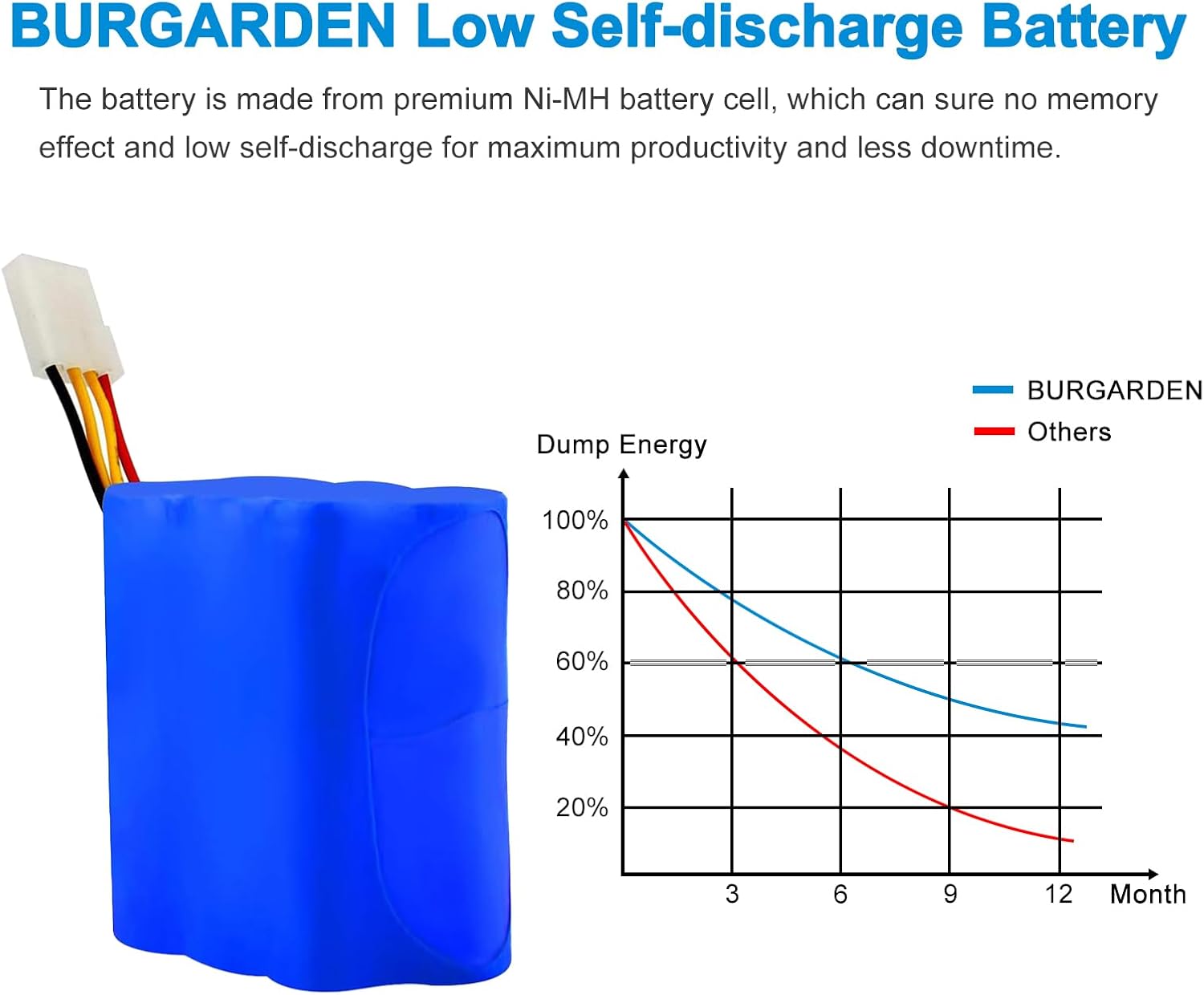 Specifications: Voltage: 7.2 Volt Capacity: 4500mAh Battery type: Ni-MH Package included: 2 x Battery Why choose our Ni-MH battery: 1, The 4500mAh high capacity battery provides your power tools with enough power to run for long periods of time and complete tasks efficiently; 2, Fully compatible with the original charger; 3, Made with Ni-MH cells no pollution to environment; 4, The battery is designed with voltage stabilizing circuit, which can effectively eliminate the memory effect and low self-discharge rate. Tips for battery use 1、Due to transportation safety reasons, the battery has a low self-charging capacity and may not reach its optimal performance until it has been fully charged and discharged for 3 cycles. 2, Charge the battery after it has completely cooled down, and take proper breaks when using it in high-power tools. 3、It is recommended to use the battery at least once a month and clean the battery contacts with a cotton swab dipped in alcohol if necessary. Warm Notes: 1、Please make sure the battery you want to buy can match the brand, model and part number of your power tool. 2、Please store the battery in a dry, clean and cool place, and keep it away from heat sources and metal objects. 3、After using our batteries, please wait for them to cool down before recharge. 4、The 2 packs batteries should be used simultaneously --- if one of them is used with other brand battery improperly, which will lead to errors based on different capacity and cells.