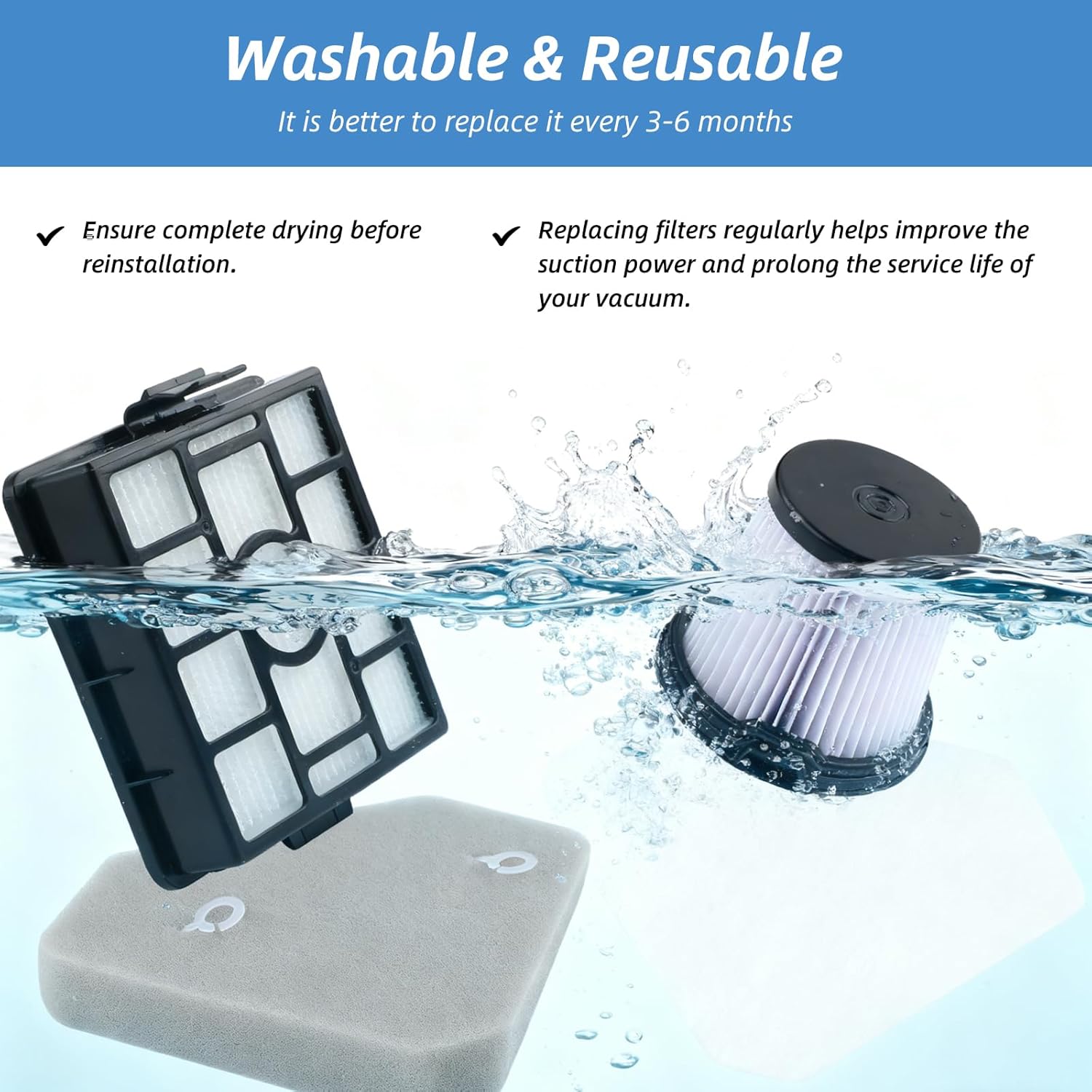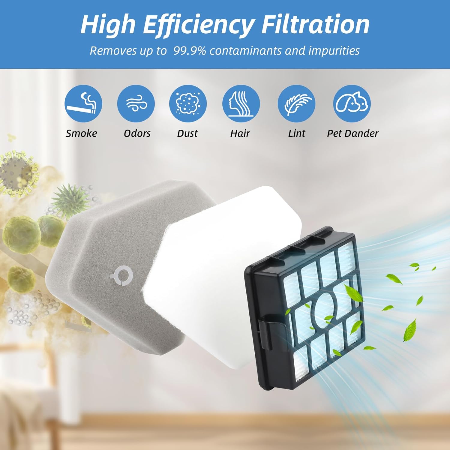 Optimize your vacuum's airflow with this HEPA filters replacement, capturing airborne contaminants and enhancing suction for a fresher home. The set for straightforward maintenance.