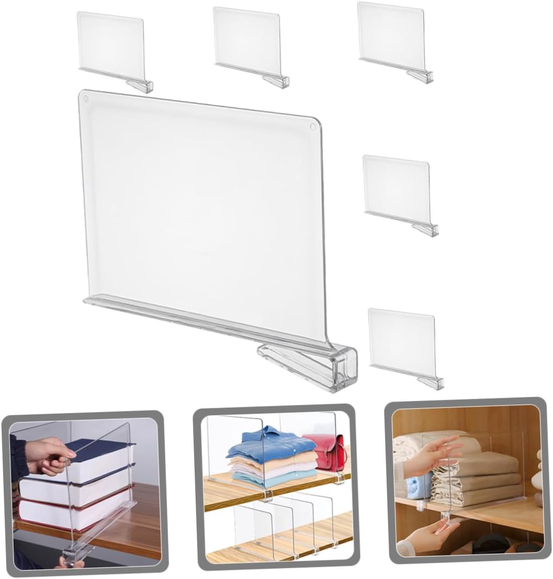 Package List 6 x Shelf Dividers Features -Color:Transparent -Product Info:Storage board -Size:30.50X20.50X3.00cm/11.99X8.06X1.18in -Material: -With the shelf divider, and the closet can be separated and sorted to store items Shelving Clothes Divider. -Easy to install, it can be easily installed on the shelf of your closet, very convenient to use Wardrobe Shelf Dividers. -This shelf divider can be used as a practical housewarming to your friends, they will be very happy storage dividers. -Made of reliable and stable material, with high durability, it is not easy to break or deform. -The stylish shelf divider allows you to separate the large shelves, to increase storage space Household Shelf Divider.Goods Descriptionclothes dividers for wardrobe Allow you to organize the narrow space effectively.Closet Storage Divider The shelf divider is a good space saving solution for over-crowded closet.shelf dividers for shelves Bring organization, storage space, and tidy style to your home with this storage rack