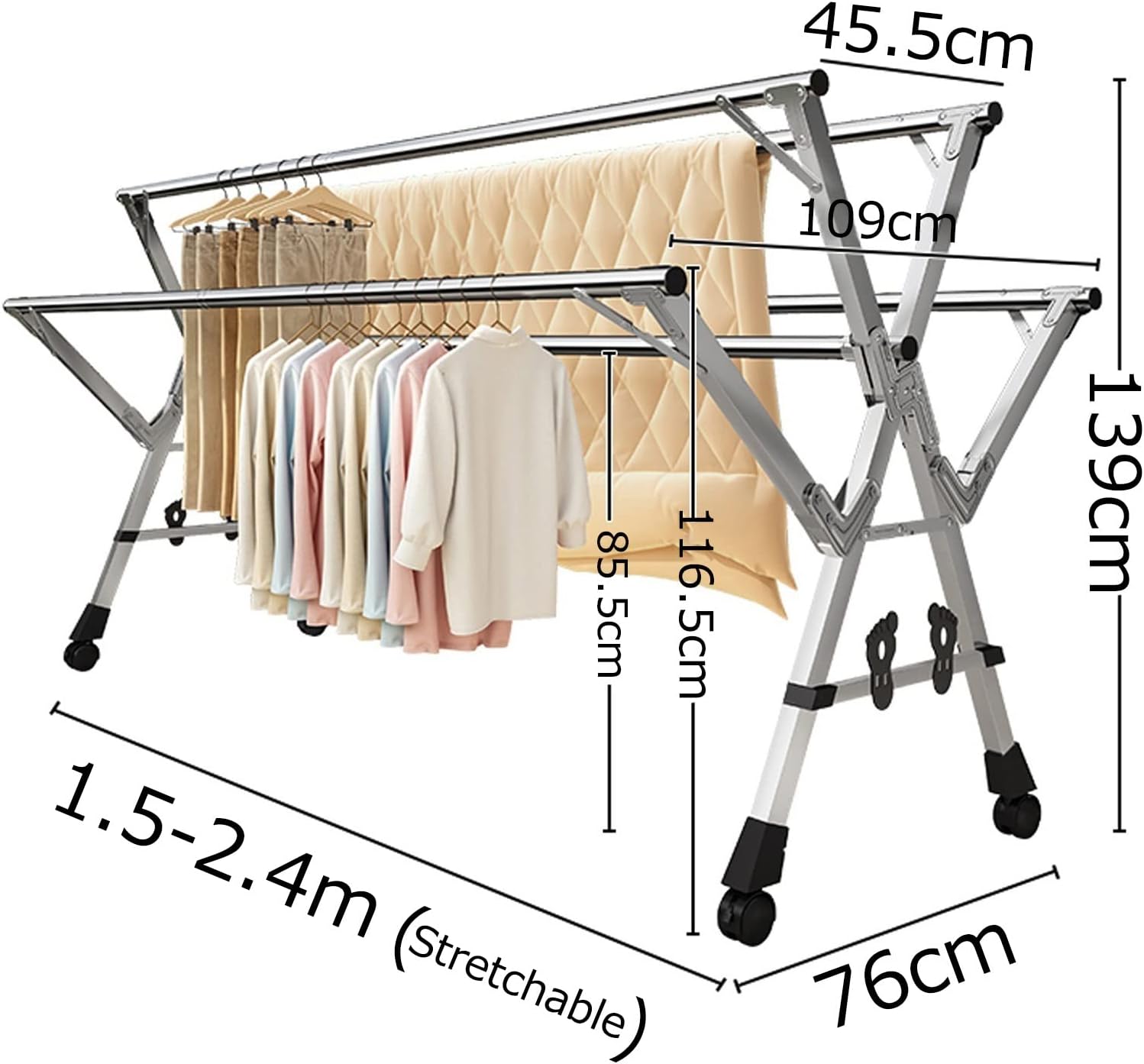Product Description: Versatile Multi-Functional Laundry RackElevate your laundry experience with our Multi-Functional Laundry Rack, designed for modern homes. This essential household item is perfect for drying clothes, towels, bed sheets, and more, offering ample space for various items while ensuring efficient air circulation for faster drying.**Space-Saving Design**: Our laundry rack features a foldable design that allows for easy storage in your laundry room, bedroom, or bathroom. When not in use, simply fold it up to reclaim valuable floor space, making it an ideal solution for small apartments or homes.**Built to Last**: Crafted from premium materials, including high-quality stainless steel or rust-resistant plastic, this laundry rack is engineered for durability. Its robust construction can withstand daily use, providing you with a reliable drying solution for years to come.**Specifications**:- **Material**: Stainless steel or rust-resistant plastic- **Dimensions**: (L) x (W) x (H)- **Weight**: "X" kg/lbs- **Load Capacity**: "Y" kg/lbs- **Color Options**: Black, White, Gray**Package Includes**:- 1 x Multi-Functional Laundry Rack- 1 x Set of Instructions**User-Friendly**: Setting up the laundry rack is a breeze; it comes with straightforward instructions and can be assembled in just minutes. Please remember to avoid overloading the rack to ensure its longevity and optimal performance. Experience the convenience and efficiency of our Multi-Functional Laundry Rack, designed to meet all your laundry needs while enhancing your home's functionality.