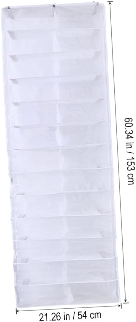 Package Include 1 x 26 Large Pocket Over the Door Hanger Shoes Organizer Closet Shelves Rack Hanging Storage Space Saver(White) Features - Material: Polyester and metal hanging shoe rack storage holder -Product Info:Shoes and miscellaneous storage bag - Size: Approx. 16.5 x 55 cm/ 6.5 x 21.6 x 5.12 inch (LxWxH) shoes organizer. - mounting, quick and easy to assemble, no extra required hanging door storage. - Great large capacity, 26 divided shelves offer enough storage for pairs of shoes, slippers, belts, scarves and other small items and will save large space for your home hanging closet storage. - ColorWhite closet shoe rack - A great over the door organizer space saver to keep your shoe collection neatly organized for a bedroom, closet, dorm room, , and other tight living spaces entryway hanging organizer. - Includes a convenient hook to position the organizer over the door, closet or cabinet. Reasonably Utilizes the unused storage space the maximum degree closet shoe organizer.Goods Informationshoes organizer closet It's assembled with reinforced metal frame and hooks for solid and strong holding, you can quickly and easily it over a closet or bedroom door for neat and orderly storage.shoe organizer Idea for space saving for your home in no time.hanging shoe storage Still confused with the messy shoes on the floor or the space of the shoe shelf for storage? Well, let's bid farewell to these trouble with thisover the door hanger shoes organizer, this hanger comes with 26 large pocket which can hold up to 26 pairs of shoes and some other small items such as hats, clothing accessories, bath and shower accessories, and other personal supplies