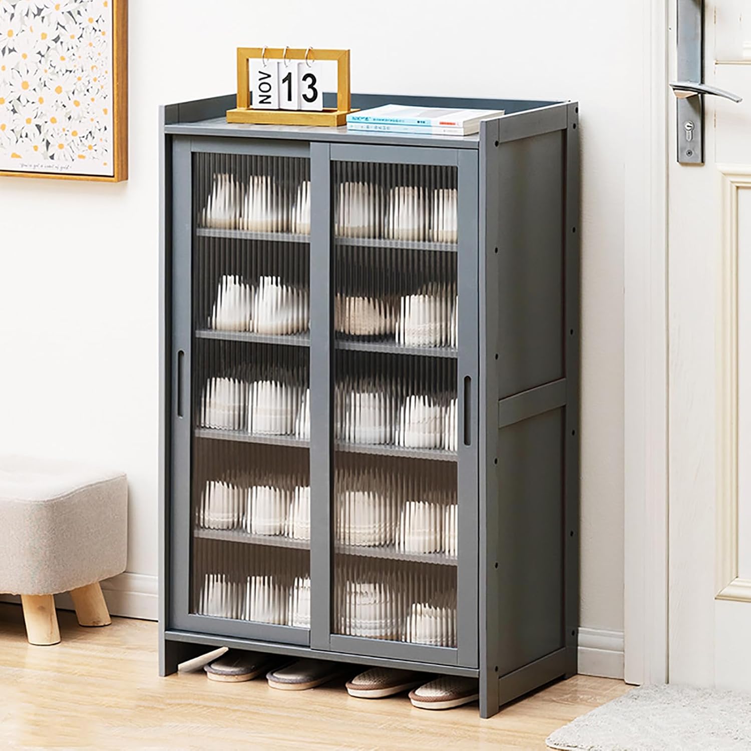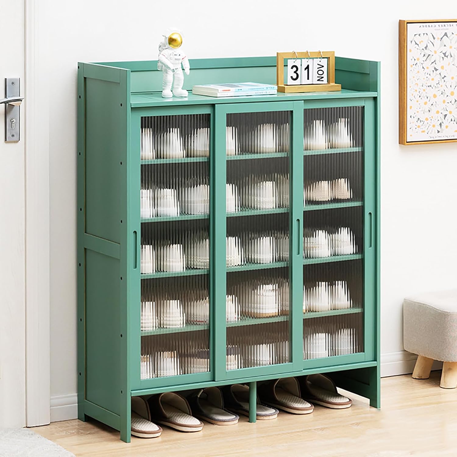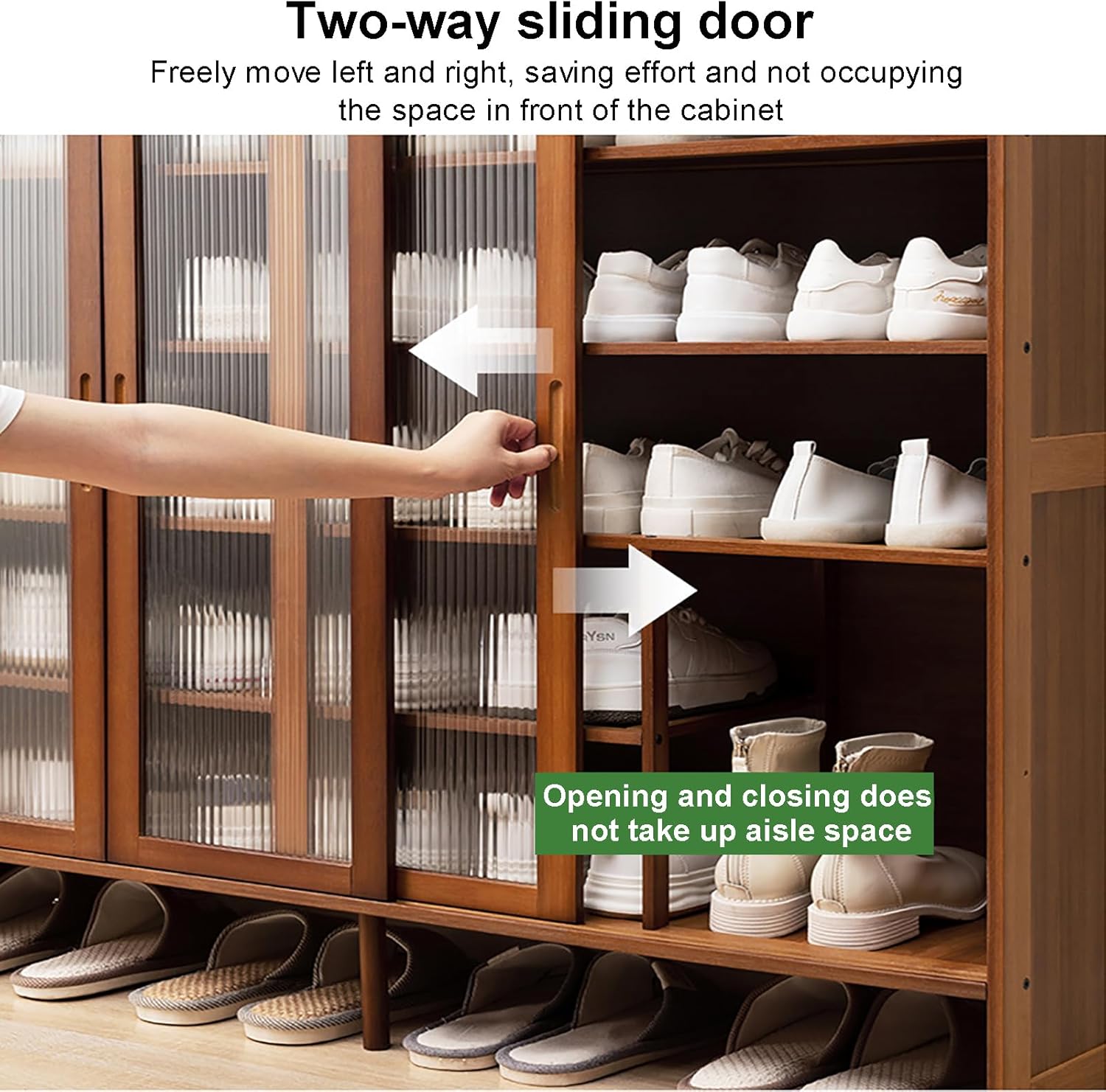 • 【Well-Designed】This Sliding Door Shoe Storage Cabinet optimizes hallway space while enhancing air circulation and reducing odors. It keeps shoes dry and organized, making it easy to find what you need. The fully enclosed back panel prevents dust accumulation and keeps shoes secure, while the top baffle design ensures items stay in place. Perfect for any entryway!