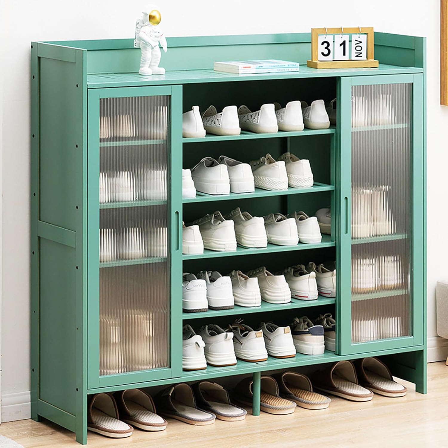 • The Shoe Storage Cabinet features a space-saving design that helps create a clutter-free entryway. This Shoe Organizer keeps your footwear neatly stored and protected from dust. Ideal for entryways, hallways, living rooms, or porches, it enhances your home’s aesthetic while maximizing space. Enjoy a tidy environment with this stylish Shoe Cabinet.