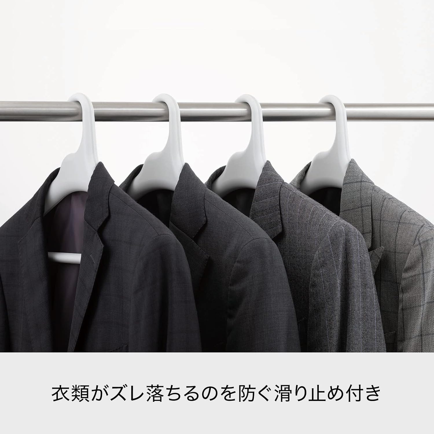 3cm thick non-slip hanger The rounded shape maintains its shape while maintaining breathability. Jacket, shirt, cut and sew have non-slip loop hooks and bars, making it convenient to hang skirts, slacks and scarves.