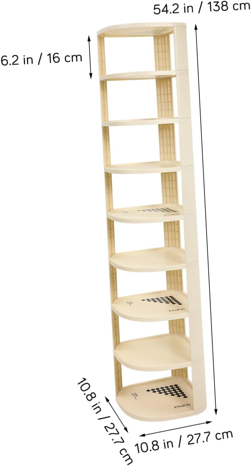 Package List 1 x shoe rack Characteristics -Color:Beige plastic shoe storage -Size: 138.00X27.70X27.70cm/54.23X10.89X10.89in entryway shoe rack -Material:Plastic shoe shelf for entryway -Stylish modern aesthetics: The shoe organizer complements contemporary interiors with its sleek construction and minimalist design, adding a touch of elegance plastic shoe cabinet. -Quick assembly: User-friendly design makes rapid assembly without the need for tools, allowing you to organize your footwear collection with minimal efforts slipper shelf. -Space-efficient design: The vertical shoe rack maximizes corner space utilization with a multi-tier, fan-shaped structure that fits snugly into tight spaces freestanding shoe shelf. -Product Info:Plastic shoe rack - and stable: Built from sturdy plastic, the shoe shelf withstands daily use, resists wear and tear, and is easy to maintain, providing a lasting option Home Shoe Rack. -Versatile storage: Besides shoes, this corner storage rack can hold sundries, hats, or other accessories, making it a multipurpose organizer adaptable to various storage needs shoe stand for bedroom.Goods Descriptionfreestanding shoe 's not just a shoe rack; it's a versatile organizational masterpiece.shoe shelf for entryway Introducing a versatile corner organizational solution that elegantly holds up to multiple tiers of shoes, purses, or accessories.adjustable multi-height shoe rack: Constructed from , modern plastic, this corner shoe rack assembles in minutes, instantly upgrading your living space with its clean lines and functionality