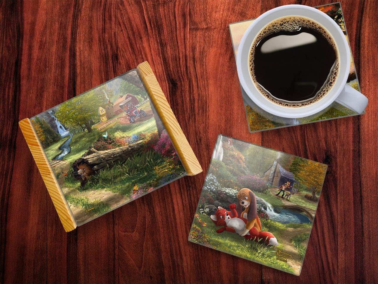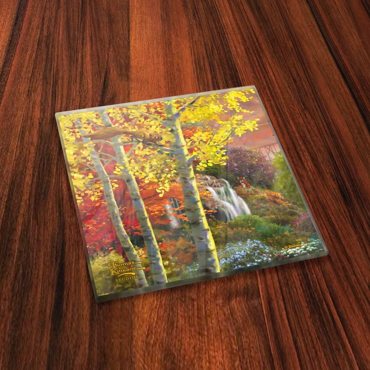 Celebrate the timeless friendship between Tod and Copper with this stunning StarFire Prints Glass Coaster Set featuring artwork inspired by Disney’s The Fox and the Hound, as envisioned by Thomas Kinkade Studios. Each coaster showcases a different heartwarming scene from the beloved film, brought to life with vivid color, striking detail, and autumnal charm. Crafted from durable tempered glass with soft rubber feet, these coasters are as functional as they are decorative—perfect for protecting your surfaces while adding a nostalgic touch to your home. StarFire Prints Glass Coasters StarFire Prints glass coasters are photographic quality prints fused permanently into glass. Featuring artwork from your favorite movies, these coasters are an elegant way to display your fandom to the world. These images are permanently fused into the glass, resulting in a print that captures the natural light, enhancing the color display and making each image a true piece of art.