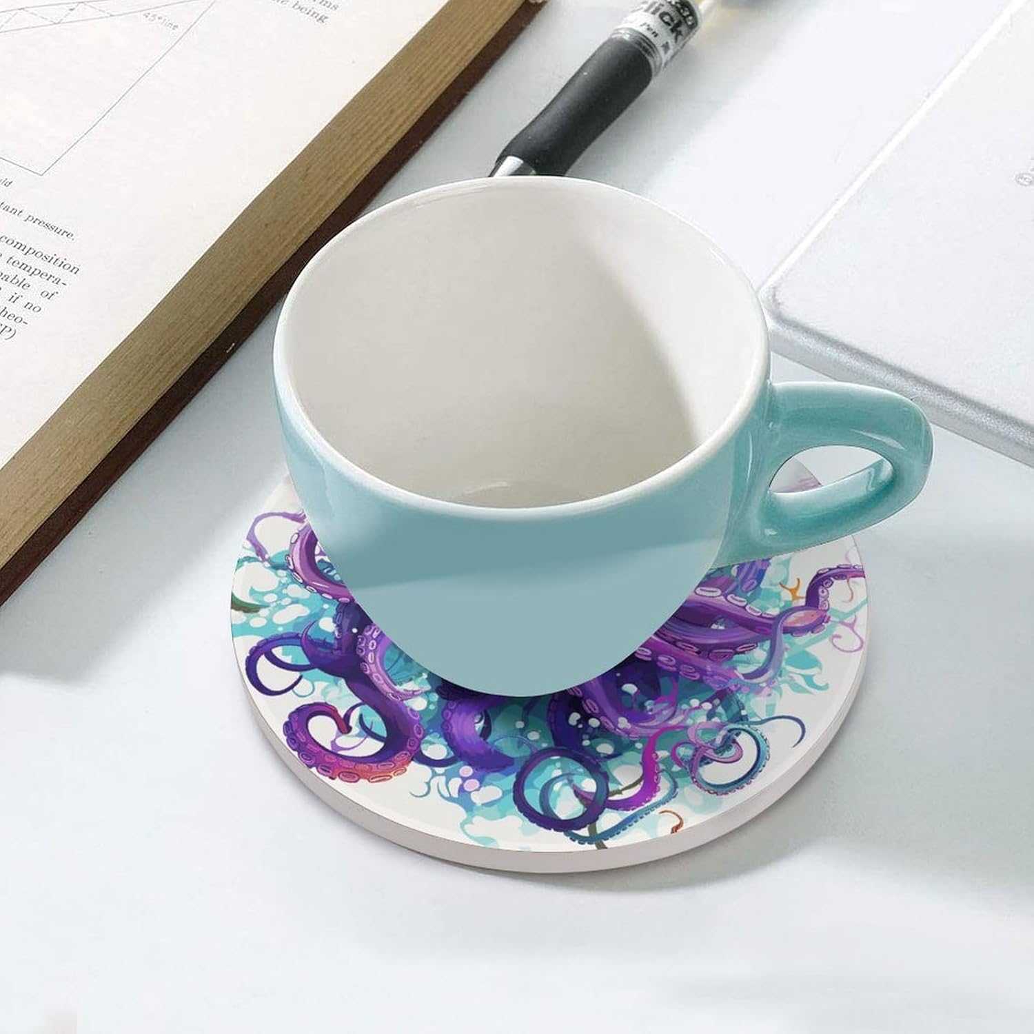 Transform your daily hydration into a stylish and protective ritual with our Cute Ceramic Coasters with Cork BottomDrink Coasters for Home Cup Mats for Table Rustic Coasters Round Coasters Unique Coasters Vintage Coasters Art Teacher Gifts Round Drink Coasters for Hot Cups Funny Coasters Outdoor Coasters for Patio Table Waterproof Bar Coasters Non-Slip Table Coasters Absorbent Coasters Ceramic Car Coasters for Cup Holders Ceramic Cup Holder Coaster for Car Cool Coasters Pretty Coasters White Wine Coasters Housewarming Gifts CoastersSuitable Size:Heat resistant coasters for drinks arr crafted from ceramic and finished with a natural cork base, each coaster is as practical as it is sustainable. The 4.1-inch round size is perfectly proportioned to sit under a variety of glassware - from your favorite coffee mug and ceramic teacup to tall glasses of iced tea or bottles of beer.Double Protection:The heat-resistant ceramic top acts as a shield, guarding your cherished wood tables, kitchen countertops, and office desks against hot beverages, unsightly water rings, and condensation . Meanwhile, the soft, non-slip cork bottom plays a dual role: it prevents the tea coasters from sliding around when you reach for your drink, and it ensures your furniture remains free from scratches and scuffs.Multi Purpose: Whether you're decorating a coffee table in the living room, adding a functional touch to a home office, or setting up a bar cart for entertaining, these decorative coasters are the perfect blend of utility and subtle style.Material: Ceramic & CorkSize: 4.1 inches (Diameter)Care: Wipe clean with a damp cloth.Designed for the modern home, these heat resistant cup mats blend functionality with minimalist aesthetics to keep your surfaces pristine.