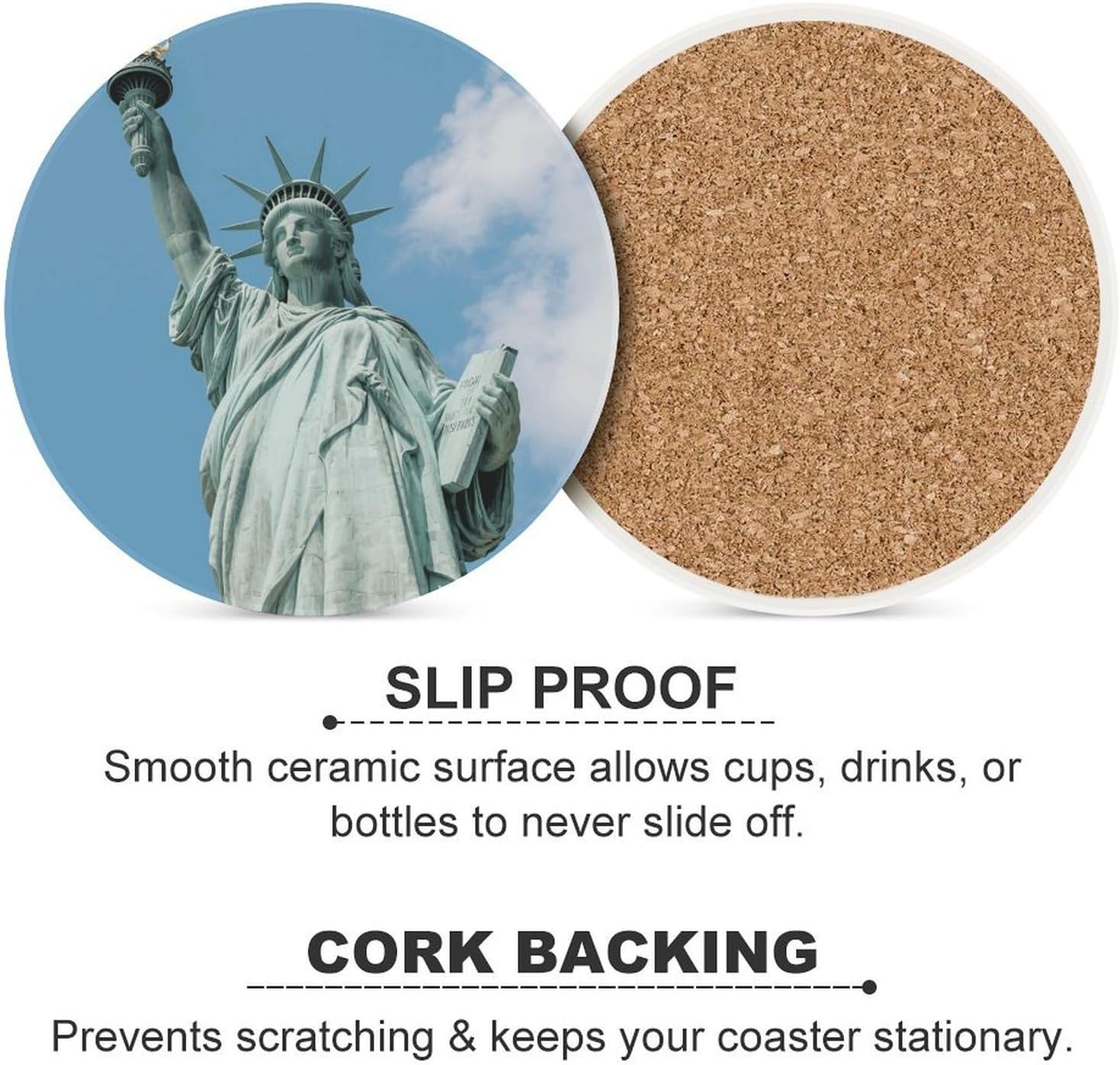 Transform your daily hydration into a stylish and protective ritual with our Cute Ceramic Coasters with Cork BottomDrink Coasters for Home Cup Mats for Table Rustic Coasters Round Coasters Unique Coasters Vintage Coasters Art Teacher Gifts Round Drink Coasters for Hot Cups Funny Coasters Outdoor Coasters for Patio Table Waterproof Bar Coasters Non-Slip Table Coasters Absorbent Coasters Ceramic Car Coasters for Cup Holders Ceramic Cup Holder Coaster for Car Cool Coasters Pretty Coasters White Wine Coasters Housewarming Gifts CoastersSuitable Size:Heat resistant coasters for drinks arr crafted from ceramic and finished with a natural cork base, each coaster is as practical as it is sustainable. The 4.1-inch round size is perfectly proportioned to sit under a variety of glassware - from your favorite coffee mug and ceramic teacup to tall glasses of iced tea or bottles of beer.Double Protection:The heat-resistant ceramic top acts as a shield, guarding your cherished wood tables, kitchen countertops, and office desks against hot beverages, unsightly water rings, and condensation . Meanwhile, the soft, non-slip cork bottom plays a dual role: it prevents the tea coasters from sliding around when you reach for your drink, and it ensures your furniture remains free from scratches and scuffs.Multi Purpose: Whether you're decorating a coffee table in the living room, adding a functional touch to a home office, or setting up a bar cart for entertaining, these decorative coasters are the perfect blend of utility and subtle style.Material: Ceramic & CorkSize: 4.1 inches (Diameter)Care: Wipe clean with a damp cloth.Designed for the modern home, these heat resistant cup mats blend functionality with minimalist aesthetics to keep your surfaces pristine.
