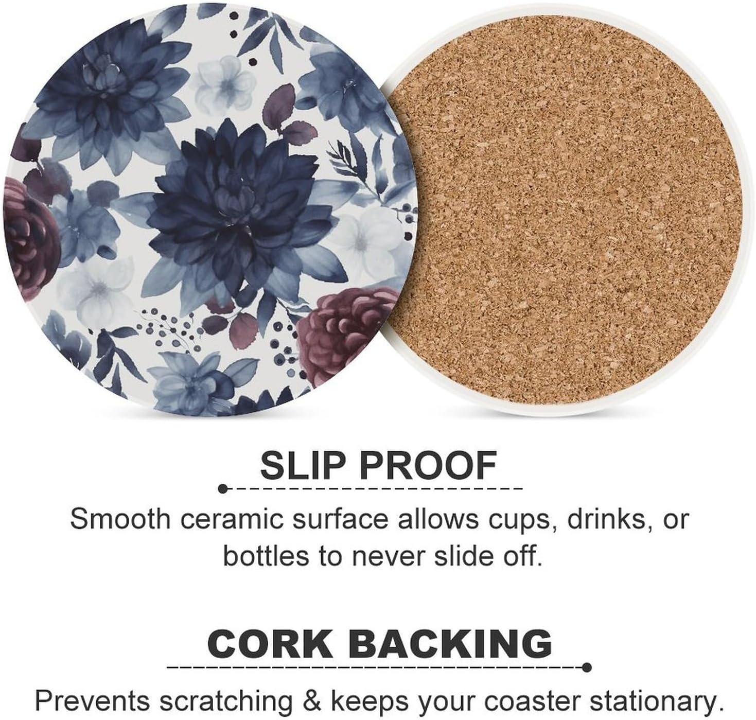 Transform your daily hydration into a stylish and protective ritual with our Cute Ceramic Coasters with Cork BottomDrink Coasters for Home Cup Mats for Table Rustic Coasters Round Coasters Unique Coasters Vintage Coasters Art Teacher Gifts Round Drink Coasters for Hot Cups Funny Coasters Outdoor Coasters for Patio Table Waterproof Bar Coasters Non-Slip Table Coasters Absorbent Coasters Ceramic Car Coasters for Cup Holders Ceramic Cup Holder Coaster for Car Cool Coasters Pretty Coasters White Wine Coasters Housewarming Gifts CoastersSuitable Size:Heat resistant coasters for drinks arr crafted from ceramic and finished with a natural cork base, each coaster is as practical as it is sustainable. The 4.1-inch round size is perfectly proportioned to sit under a variety of glassware - from your favorite coffee mug and ceramic teacup to tall glasses of iced tea or bottles of beer.Double Protection:The heat-resistant ceramic top acts as a shield, guarding your cherished wood tables, kitchen countertops, and office desks against hot beverages, unsightly water rings, and condensation . Meanwhile, the soft, non-slip cork bottom plays a dual role: it prevents the tea coasters from sliding around when you reach for your drink, and it ensures your furniture remains free from scratches and scuffs.Multi Purpose: Whether you're decorating a coffee table in the living room, adding a functional touch to a home office, or setting up a bar cart for entertaining, these decorative coasters are the perfect blend of utility and subtle style.Material: Ceramic & CorkSize: 4.1 inches (Diameter)Care: Wipe clean with a damp cloth.Designed for the modern home, these heat resistant cup mats blend functionality with minimalist aesthetics to keep your surfaces pristine.