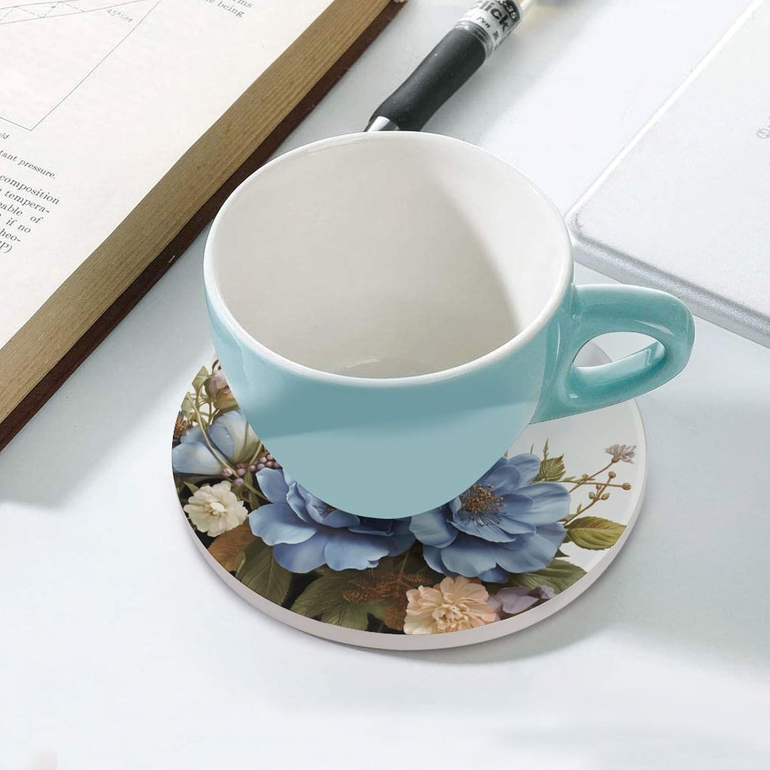 Transform your daily hydration into a stylish and protective ritual with our Cute Ceramic Coasters with Cork BottomDrink Coasters for Home Cup Mats for Table Rustic Coasters Round Coasters Unique Coasters Vintage Coasters Art Teacher Gifts Round Drink Coasters for Hot Cups Funny Coasters Outdoor Coasters for Patio Table Waterproof Bar Coasters Non-Slip Table Coasters Absorbent Coasters Ceramic Car Coasters for Cup Holders Ceramic Cup Holder Coaster for Car Cool Coasters Pretty Coasters White Wine Coasters Housewarming Gifts CoastersSuitable Size:Heat resistant coasters for drinks arr crafted from ceramic and finished with a natural cork base, each coaster is as practical as it is sustainable. The 4.1-inch round size is perfectly proportioned to sit under a variety of glassware - from your favorite coffee mug and ceramic teacup to tall glasses of iced tea or bottles of beer.Double Protection:The heat-resistant ceramic top acts as a shield, guarding your cherished wood tables, kitchen countertops, and office desks against hot beverages, unsightly water rings, and condensation . Meanwhile, the soft, non-slip cork bottom plays a dual role: it prevents the tea coasters from sliding around when you reach for your drink, and it ensures your furniture remains free from scratches and scuffs.Multi Purpose: Whether you're decorating a coffee table in the living room, adding a functional touch to a home office, or setting up a bar cart for entertaining, these decorative coasters are the perfect blend of utility and subtle style.Material: Ceramic & CorkSize: 4.1 inches (Diameter)Care: Wipe clean with a damp cloth.Designed for the modern home, these heat resistant cup mats blend functionality with minimalist aesthetics to keep your surfaces pristine.