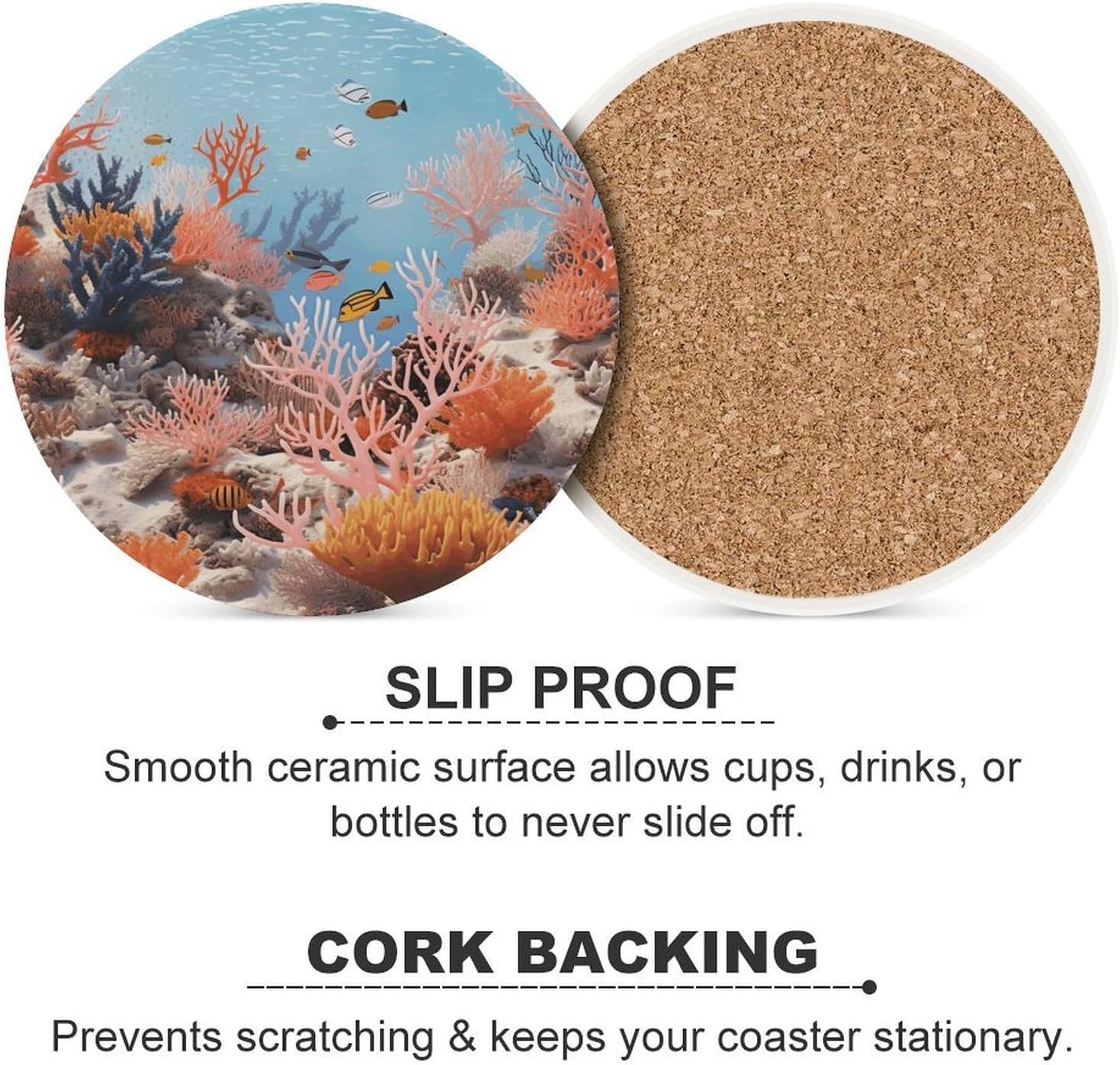Transform your daily hydration into a stylish and protective ritual with our Cute Ceramic Coasters with Cork BottomDrink Coasters for Home Cup Mats for Table Rustic Coasters Round Coasters Unique Coasters Vintage Coasters Art Teacher Gifts Round Drink Coasters for Hot Cups Funny Coasters Outdoor Coasters for Patio Table Waterproof Bar Coasters Non-Slip Table Coasters Absorbent Coasters Ceramic Car Coasters for Cup Holders Ceramic Cup Holder Coaster for Car Cool Coasters Pretty Coasters White Wine Coasters Housewarming Gifts CoastersSuitable Size:Heat resistant coasters for drinks arr crafted from ceramic and finished with a natural cork base, each coaster is as practical as it is sustainable. The 4.1-inch round size is perfectly proportioned to sit under a variety of glassware - from your favorite coffee mug and ceramic teacup to tall glasses of iced tea or bottles of beer.Double Protection:The heat-resistant ceramic top acts as a shield, guarding your cherished wood tables, kitchen countertops, and office desks against hot beverages, unsightly water rings, and condensation . Meanwhile, the soft, non-slip cork bottom plays a dual role: it prevents the tea coasters from sliding around when you reach for your drink, and it ensures your furniture remains free from scratches and scuffs.Multi Purpose: Whether you're decorating a coffee table in the living room, adding a functional touch to a home office, or setting up a bar cart for entertaining, these decorative coasters are the perfect blend of utility and subtle style.Material: Ceramic & CorkSize: 4.1 inches (Diameter)Care: Wipe clean with a damp cloth.Designed for the modern home, these heat resistant cup mats blend functionality with minimalist aesthetics to keep your surfaces pristine.