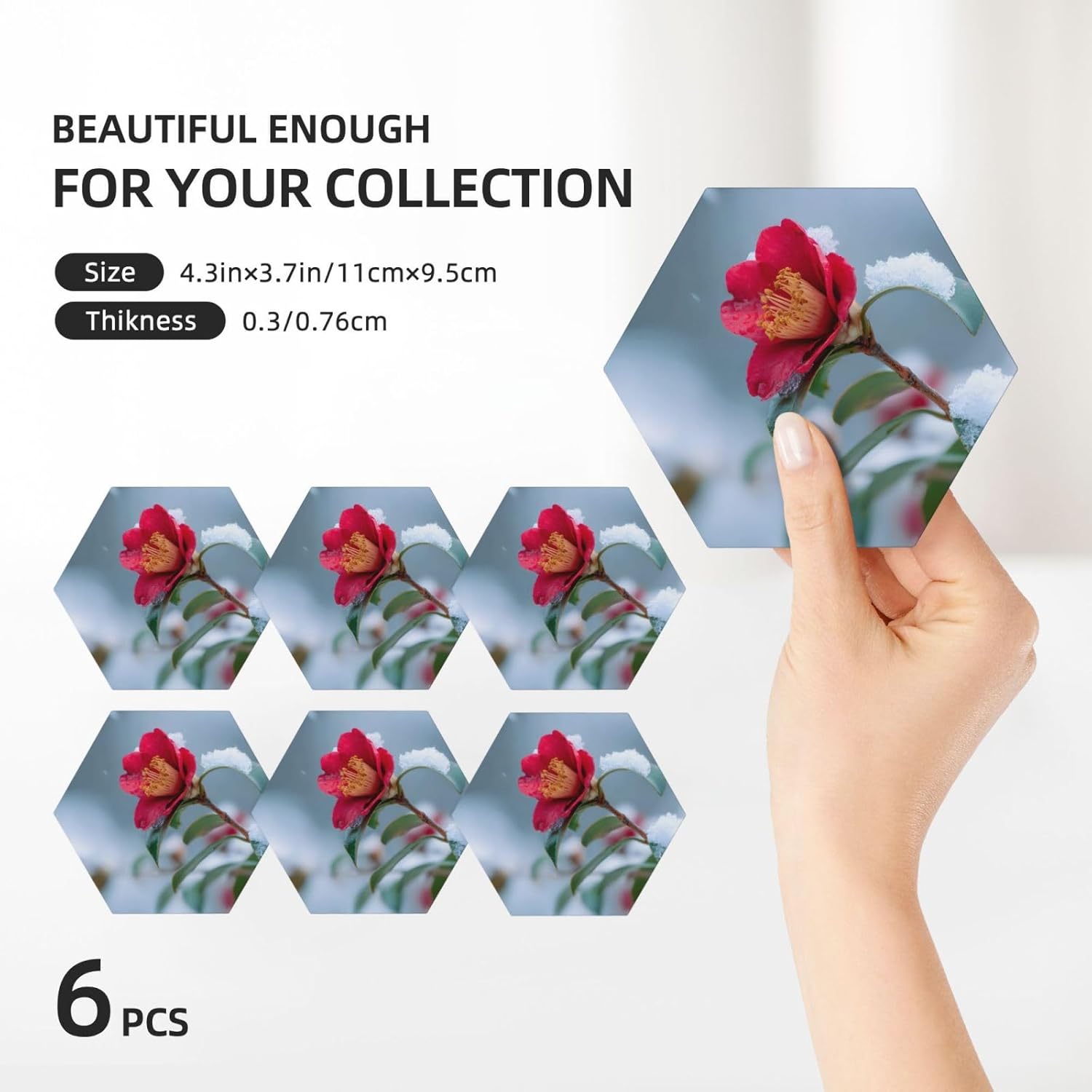 Product Name: DCEHGEW Ceramic Drink CoastersMaterial Type: Ceramic with cork bottomSize: Round: 4.1 x 4.1 inches, Square: 3.9 x 3.9 inches, Hexagon: 4.3 x 3.7 inchesPattern: red camellia blooms About Our Ceramic Absorbent Coasters:Product Features - Crafted from high-quality ceramic, these coasters are odorless and eco-friendly. Their superior absorbency keeps your surfaces dry by quickly soaking up spills from coffee, cola, and other beverages within 10-15 seconds.Applicable Scenarios - Perfect for adding a stylish touch to your kitchen, living room, bar, hotel, or restaurant. These coasters are an ideal present for birthdays, Mother's Day, Father's Day, Valentine's Day, anniversaries, housewarming celebrations, or Christmas.Accessory Structure - Each set includes 6 ceramic coasters with cork bottoms, accompanied by a sleek black metal stand for organized and aesthetic storage. Choose from three different shapes to suit your style and needs.Washing Instructions - Easily clean these coasters with water or a damp cloth.Special NoteDue to different measurement methods, a deviation of up to 0.3 cm in size is considered normal.Please Note:The product images are for reference only. Actual products may vary slightly due to production factors such as batch differences and machine settings. Minor variations in color, position, and size are normal and not considered defects. Thank you for your understanding!Customer Service:We want to make sure you have an amazing experience with us. Please contact us with any feedback you may have. We love to hear from you and usually respond within 12-24 hours.