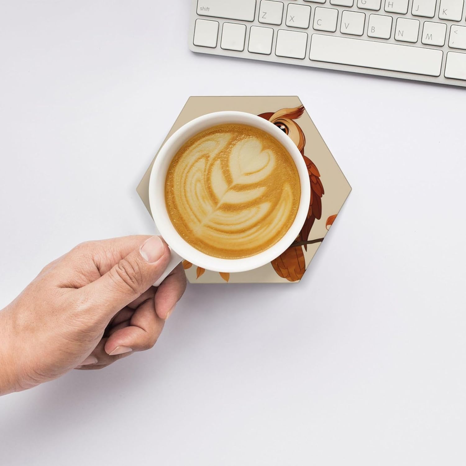 Product Name: DCEHGEW Ceramic Drink CoastersMaterial Type: Ceramic with cork bottomSize: Round: 4.1 x 4.1 inches, Square: 3.9 x 3.9 inches, Hexagon: 4.3 x 3.7 inchesPattern: Cute Brown Cartoon Owls About Our Ceramic Absorbent Coasters:Product Features - Crafted from high-quality ceramic, these coasters are odorless and eco-friendly. Their superior absorbency keeps your surfaces dry by quickly soaking up spills from coffee, cola, and other beverages within 10-15 seconds.Applicable Scenarios - Perfect for adding a stylish touch to your kitchen, living room, bar, hotel, or restaurant. These coasters are an ideal present for birthdays, Mother's Day, Father's Day, Valentine's Day, anniversaries, housewarming celebrations, or Christmas.Accessory Structure - Each set includes 6 ceramic coasters with cork bottoms, accompanied by a sleek black metal stand for organized and aesthetic storage. Choose from three different shapes to suit your style and needs.Washing Instructions - Easily clean these coasters with water or a damp cloth.Special NoteDue to different measurement methods, a deviation of up to 0.3 cm in size is considered normal.Please Note:The product images are for reference only. Actual products may vary slightly due to production factors such as batch differences and machine settings. Minor variations in color, position, and size are normal and not considered defects. Thank you for your understanding!Customer Service:We want to make sure you have an amazing experience with us. Please contact us with any feedback you may have. We love to hear from you and usually respond within 12-24 hours.
